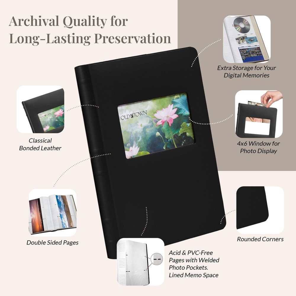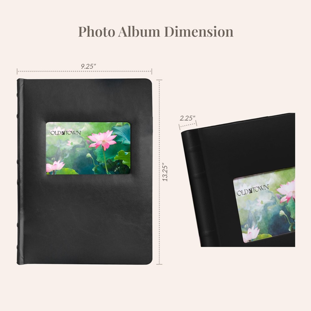 's 2-Pack Leather Photo Albums perfectly blend elegance and practicality. The classic bonded leather cover with an artistic raised spine adds a touch of sophistication to your photo collection. The deluxe faux suede lining offers luxurious safeguarding for all your keepsakes.Versatile Page DesignWith 50 double-sided, multi-format pages, this 9x13-inch album holds up to 300 4x6 photos or a mix of 100 5x7 and landscape formats. The bi-directional pages provide flexibility for arranging your photos, while the welded slots ensure each picture stays securely in place.Archival Quality for Long-Lasting PreservationYour memories deserve to be preserved in pristine condition. That's why our big photo album features acid-and-PVC-free pages with optically clear welded photo pockets, protecting your photos from fading, yellowing, or damage over time. Each page also includes lined memo space, allowing you to add personal notes, dates, or captions that bring your photos to life. These albums perfectly complement your picture frames (sold separately).Choose Your ColorBlack LeatherBrown LeatherBurgundy LeatherCaramel LeatherNavy LeatherPersonalize Your Photo Album with a Unique Cover DisplayMake your album truly yours with a customizable cover. The padded front cover includes a 4x6-inch window for showcasing a favorite photo, logo, or even a special message.Convenient Extra Storage for Your Digital MemoriesIn addition to storing your photos, this album offers an extra page designed for digital memories. The back of the album includes space for 2 CDs and 2 index cards, allowing you to keep digital copies or slideshows of your photos safely stored alongside your physical prints.Start creating a keepsake that will last for generations with an Photo Album! Capture Every Memory: Preserve all your cherished moments with these 2-pack photo albums. Measuring 9x13 inches, these photo albums for 4x6 photos hold up to 300 images, or 100 5x7 and landscape photos. Elegant Design Meets Durability: Wrapped in classical bonded leather with an artistic raised spine and deluxe faux suede lining, this photo album is visually stunning and built to last. Its rounded corners are designed to minimize crushing and damage. Versatile Display for Photos: With the bi-directional pages in our multi size photo album, you can easily arrange postcards, pictures, and other keepsakes of various sizes. Plus, the lined memo space allows you to add personal notes or dates. Archival Quality: The leather photo album includes 50 double-sided welded pages. The picture albums feature acid-and-PVC-free pages to ensure that your photos remain vibrant, clear, and protected from fading or discoloration over time. Album for Photos with Extra Storage: Create a personalized photo album by showcasing a favorite photo or special logo in the 4x6-inch cover window. An additional back page offers space for 2 CDs and 2 index cards, keeping your memories neatly organized.