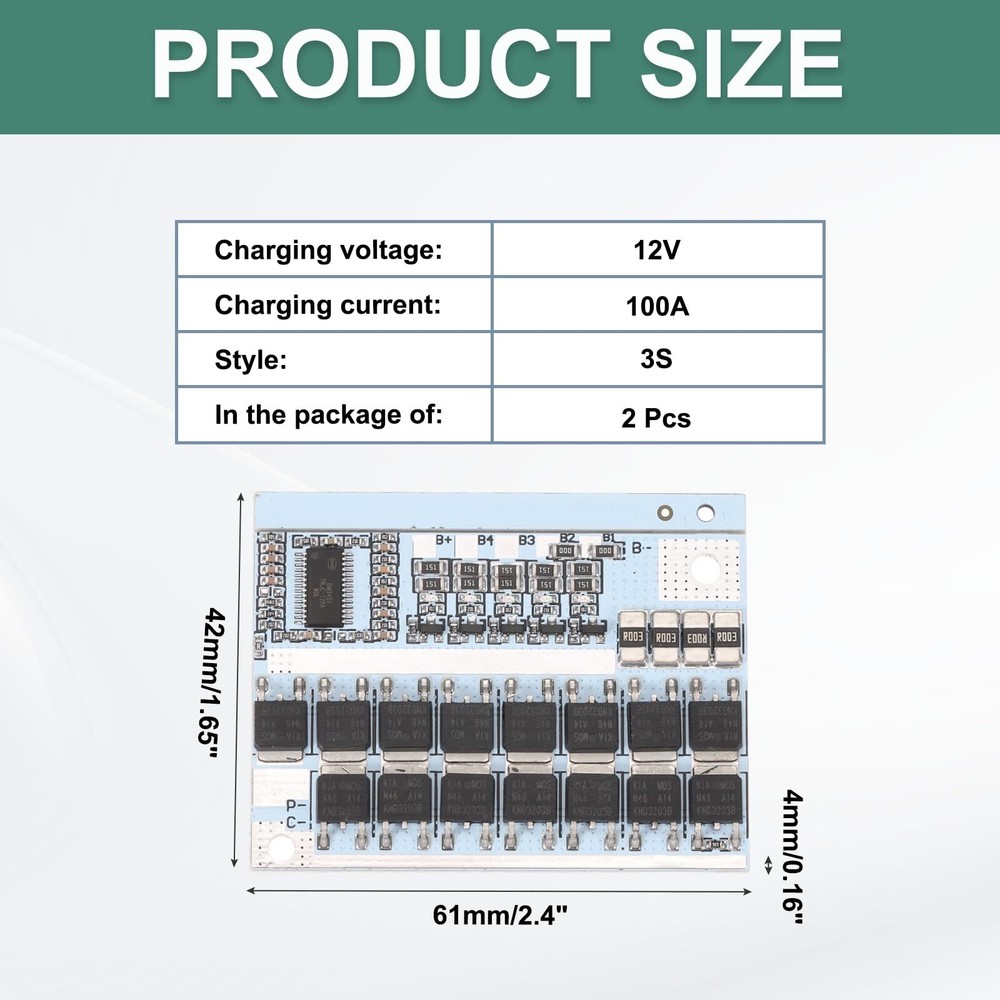 Exclusive Offers Await! Welcome to our stores! Satisfaction is what we guarantee. 2Pcs 3S 100A Li-Polymer Battery Protection Circuit Board Lithium Battery Balance Charging Module Li-Polymer Charging Board for 3.7V Packs Product Overview What is it? The lithium battery protection board is specially designed for lithium phosphate, lithium battery, lithium cobalt oxide, and lithium manganese oxide battery packs. It can be used for lithium battery,3.7V battery pack, etc. It supports disconnection protection, over current protection, over-discharge protection, over charge protection, and balancing. What will I get? Lithium Battery Charger Board Charging voltage:12V Charging current:100A Style:3S Total Size:61x42x4mm/2.4x1.65x0.16 inch(L*W*T) In the package of: 2 pcs x Battery Balance Charging Module Are there any advantages of the product? Li-Polymer battery charging protection board adopts mature protection circuit, fine workmanship, durability, stable performance, IC and supports disconnection protection with complete and stable charging and discharging protection functions, battery hardware balance processing, appropriate balance current, reasonable balanced heating, and does not affect the performance of the battery pack. How to use? 1. After all the wires are connected according to the wiring diagram, check whether they are correct. Only after check can they be used. 2. During use, when the indicator light on the protection board is on, it means that the corresponding battery pack is in a balanced working state (that is, the battery is unbalanced at this time). What should I pay attention to? Lithium batteries should be charged with a lithium battery charger.Lead-acid charging may cause high voltage to break through the MOS tube on the protection board, causing the protection board to over charge and fail to provide protection. Key Features The lithium battery protection board is specially designed for lithium phosphate, lithium battery, lithium cobalt oxide, and lithium manganese oxide battery packs. It can be used for lithium battery,3.7V battery pack, etc. It supports disconnection protection, over current protection, over-discharge protection, over charge protection, and balancing. Lithium Battery Charger Board;Charging voltage:12V;Charging current:100A;Style:3S;Total Size:61x42x4mm/2.4x1.65x0.16 inch(L*W*T);In the package of: 2 pcs x Battery Balance Charging Module Li-Polymer battery charging protection board adopts mature protection circuit, fine workmanship, durability, stable performance, IC and supports disconnection protection with complete and stable charging and discharging protection functions, battery hardware balance processing, appropriate balance current, reasonable balanced heating, and does not affect the performance of the battery pack. 1. After all the wires are connected according to the wiring diagram, check whether they are correct. Only after check can they be used.2. During use, when the indicator light on the protection board is on, it means that the corresponding battery pack is in a balanced working state (that is, the battery is unbalanced at this time). Lithium batteries should be charged with a lithium battery charger.Lead-acid charging may cause high voltage to break through the MOS tube on the protection board, causing the protection board to over charge and fail to provide protection. Payment Information ★ Secure payments through eBay. ★ We accept PayPal and all major credit cards. ★ Immediate payment required upon purchase. ★ For any payment issues, please contact our support team. Shipping Information ★ Orders are shipped to the address provided during checkout. Please verify your address. ★ We process orders within 1 business day (excluding weekends and holidays). ★ Standard delivery time is 3-5 business days. ★ We use trusted carriers like UPS, FedEx, and USPS. ★ Shipping is only available within the contiguous United States. No shipping to Alaska, Hawaii, Puerto Rico, or PO Boxes. ★ If there are any shipping delays, please contact us for support. Return Policy ★ We offer a 30-day return policy. ★ If you are not satisfied with your purchase, you can return it within 30 days for a full refund. ★ Please contact us to obtain the return address before sending back any items. ★ Items must be returned in their original condition and packaging.