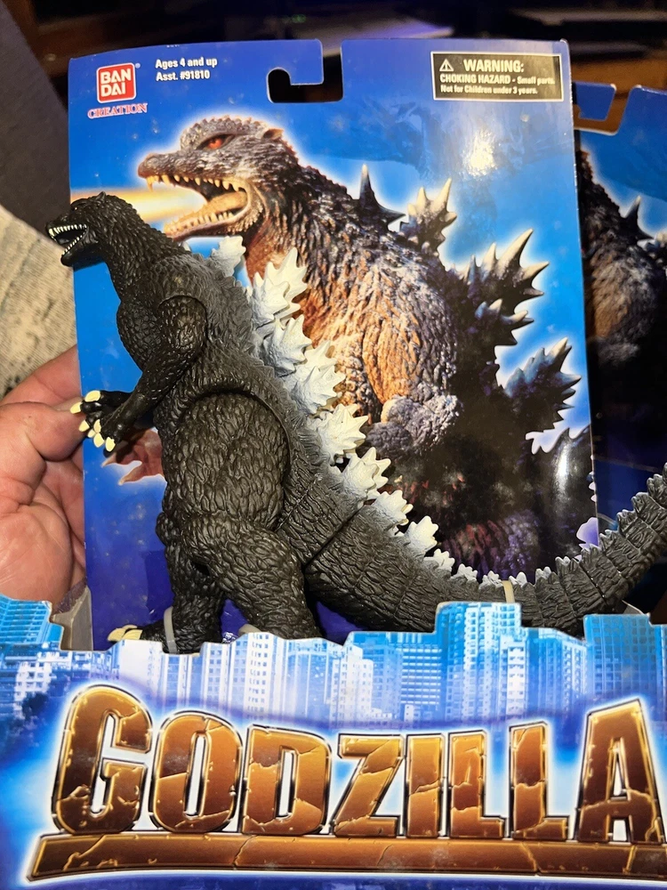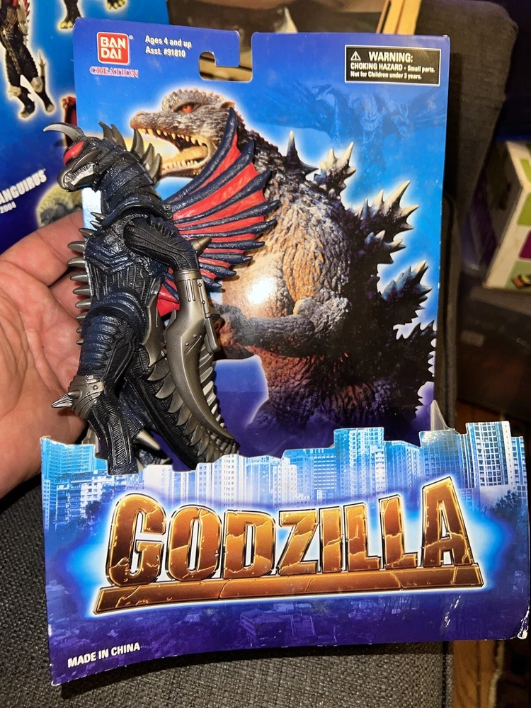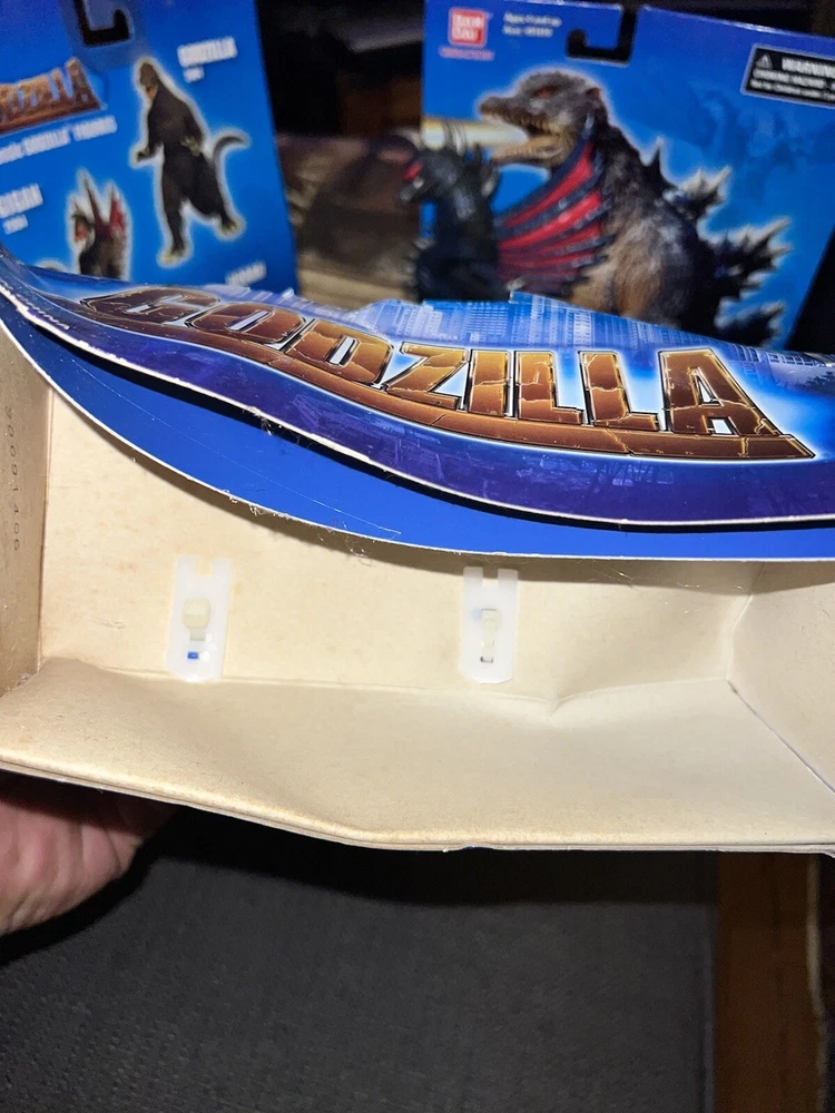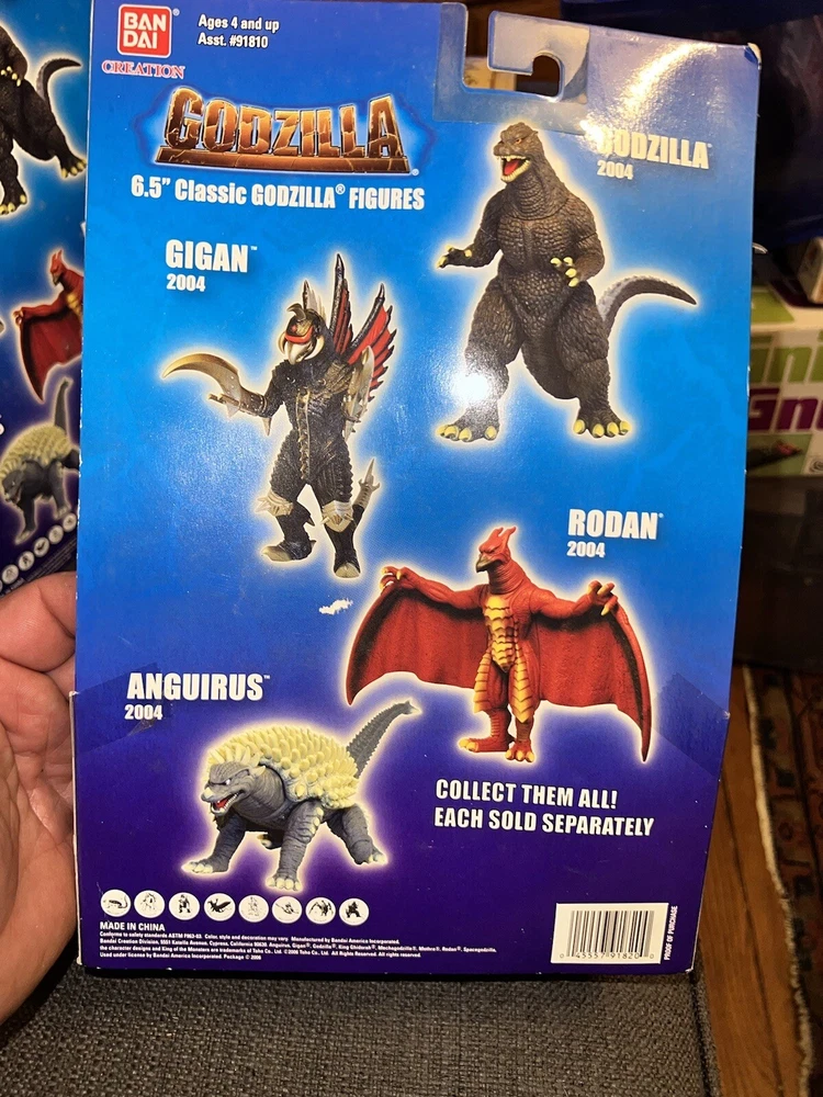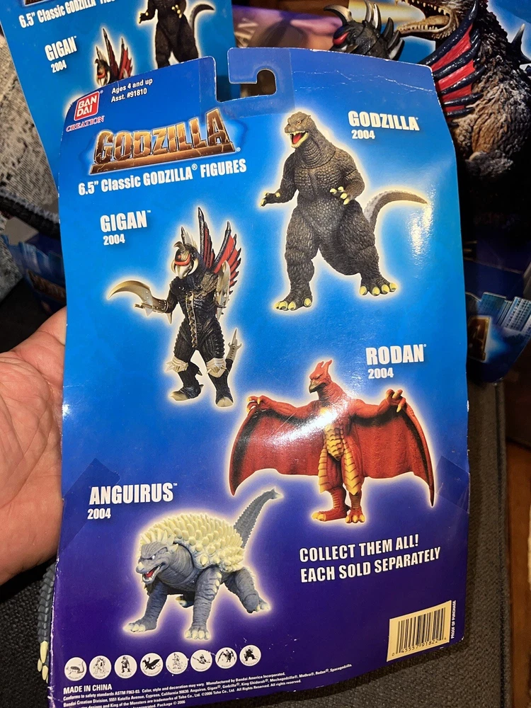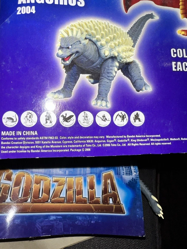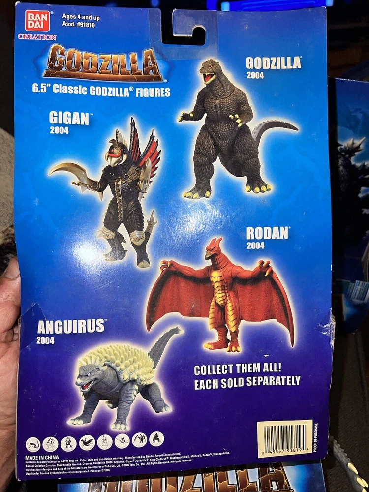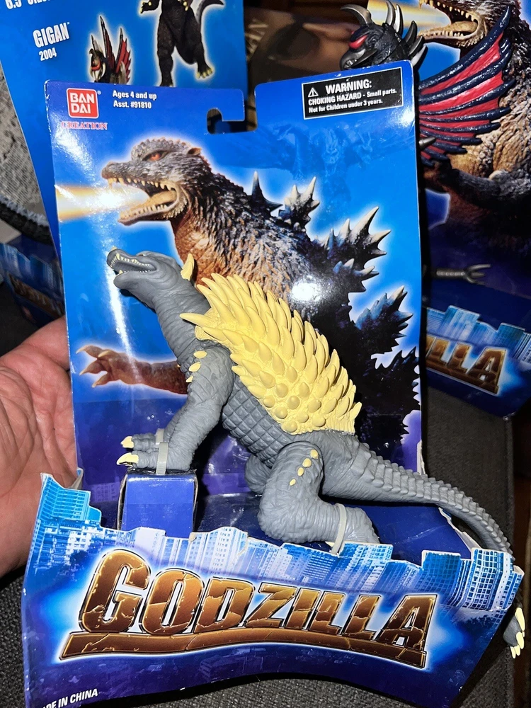 Theee Bandai Toho - c2006 Godzilla figures Mint figures on original card/carsboard. The structure of the cardboard was not great. The cards have some waves and form issues. All the figures are sealed and mint. Anguirus Godzilla Gigan All three for one price. One part of a massive toy haul. Lot CC Please let me know if you have any questions Capitol Salvage - Facebook and Instagram