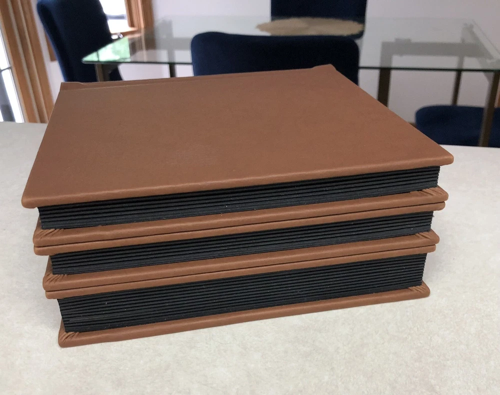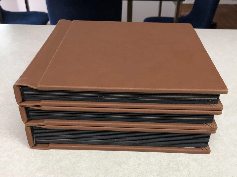 Auction includes a lot of 3 genuine Tuscany leather bound professional photo albums. These are brand new as pictured. These are genuine leather covered. These are all self stick as seen in the pictures. Overall dimensions are 8 1/2” X 8 1/2”. You will receive 1 (12) page album and 2 (7) page albums. Pictures are actual items you will receive. Message us with any questions.