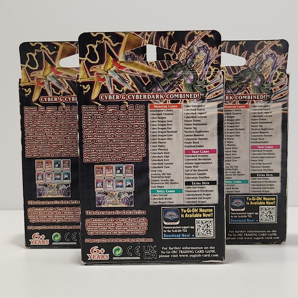 3x Yu-Gi-Oh! Cyber Strike Structure Deck β Trading Card Game Lot β Factory Sealed Get three factory-sealed Yu-Gi-Oh! Cyber Strike Structure Decks in this lot! Perfect for collectors or duelists looking to power up with Cyberdark and Cyber Dragon strategies. π§ Condition: All three decks are brand new and sealed Boxes have minor damage and some writing on the exterior β cards inside are unaffected π΄ Includes: 3x Cyber Strike Structure Decks (each deck contains 46 cards) π Shipping and Returns: Shipping: Fast shipping available. The item will be securely packaged to ensure it arrives without any damage. Returns: Returns accepted if the item is not as described. π― Buy with Confidence: Trusted Seller: Committed to transparency and customer satisfaction. Secure Packaging: Ensured thorough packaging to protect the cards during shipping. Detailed Product Descriptions: All details about the itemβs authenticity and condition are clearly communicated. β Item Description: It is described to the best of my knowledge.