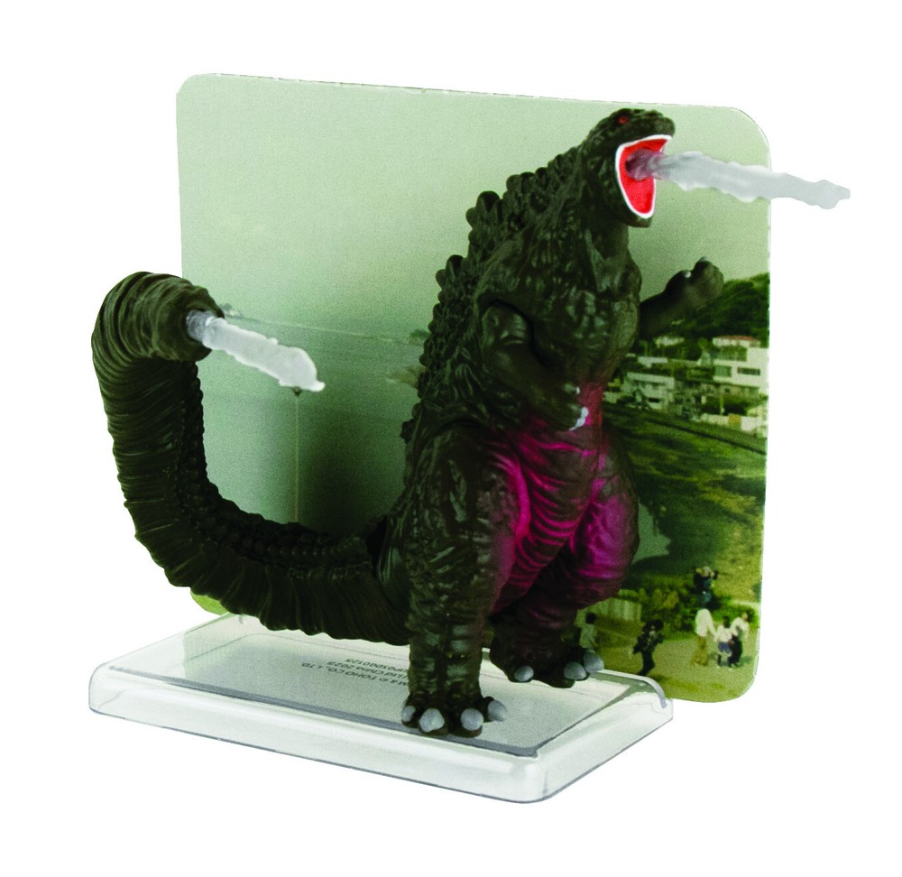 Shin Godzilla King Of The Monsters Figure Atomic Heat Ray Figure includes Atomic Heat Ray that Godzilla can "shoot" from his mouth or tail as well as display stand and diorama card. Godzilla figure stands 3.75 inches tall. Figure is an articulated and poseable. Figure is fairly heavy solid and well made. BE SURE TO CHECK OUT OUR STORE TO SEE OUR COMPLETE LINE OF GODZILLA MONSTER TOYS