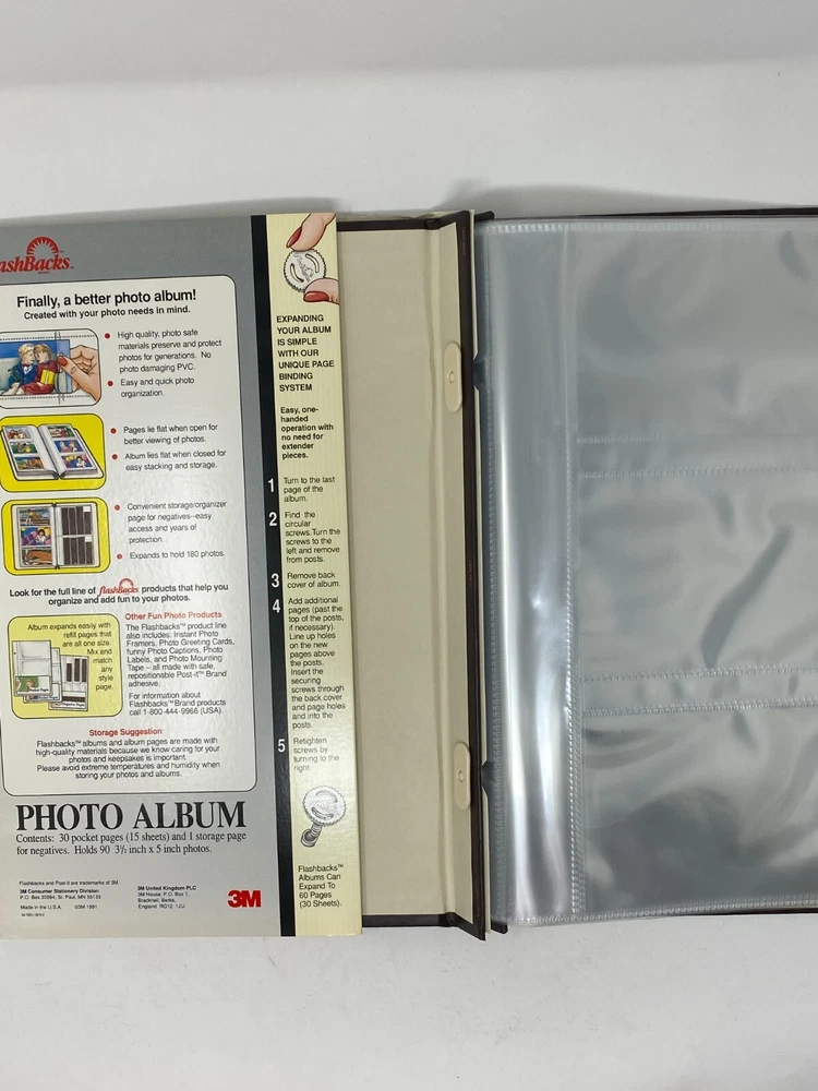 3M Flashbacks Pocket Page Photo Album 3.5 x 5 Slide In New Vintage Brown Brand new in original packaging. Package has some price sticker adhesive. Click on our user name to search our store. We specialize in craft and Creative Memories items along with interesting estate finds. We are happy to combine shipping to save you money. Simply add items to your cart and select "Request an Invoice from the Seller." Buy with confidence! Your purchase supports a true small business, my family of four. We ship throughout the week mainly by USPS, sometimes FedEx or UPS for heavier items. Your item will be packed with care. We have 20 years of experience on Ebay. We are a tidy smoke and pet free home.