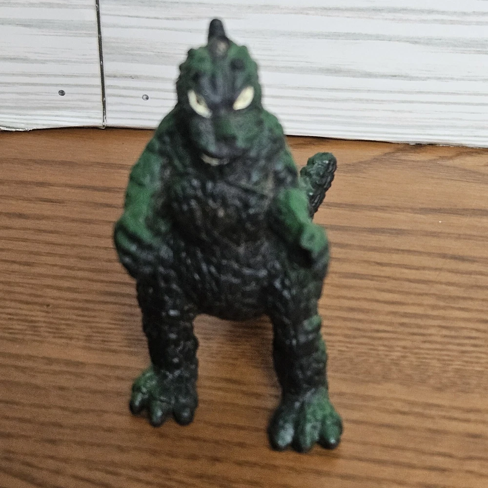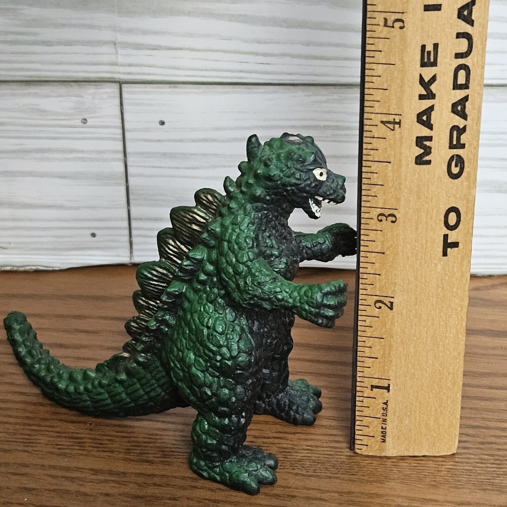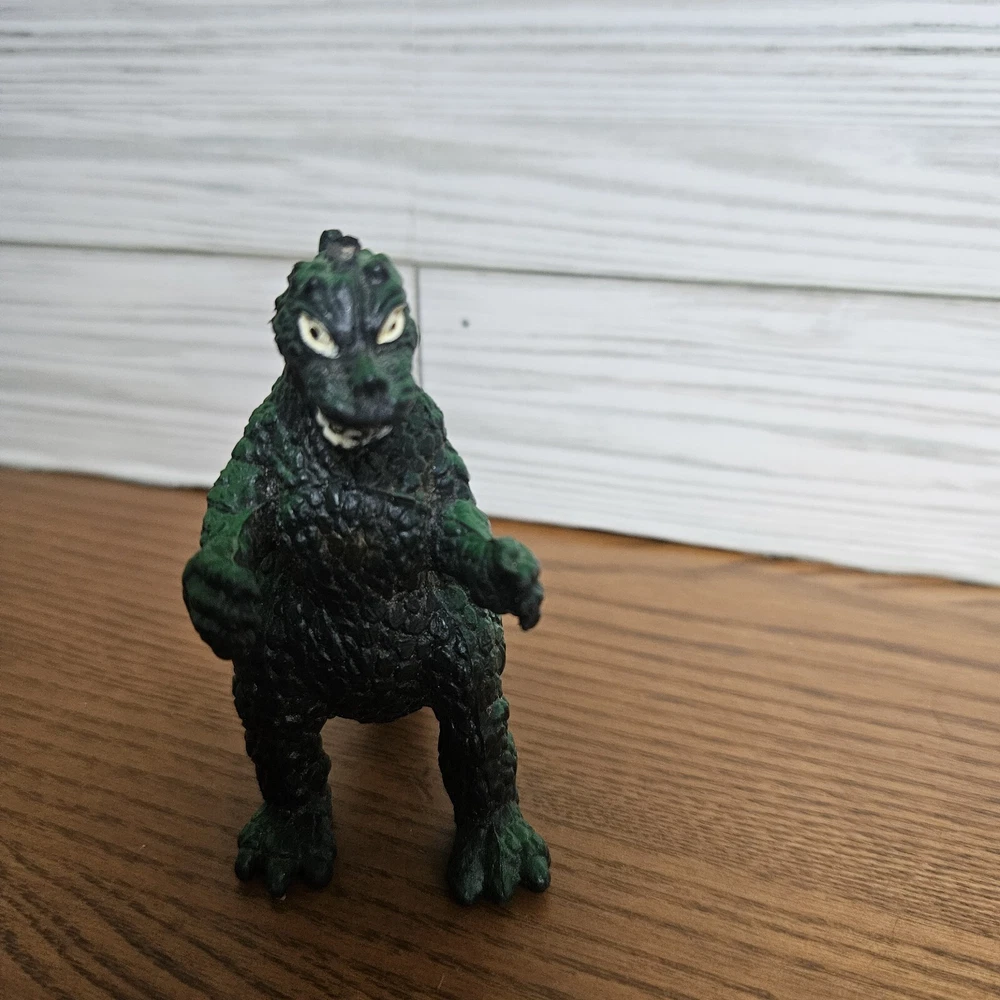 Preowned good to very good condition, minimal wear. See Photos This 4" Godzilla figure is a must-have for any fan of the iconic movie character. Made in China with high-quality plastic material, this original action figure features the classic green color with gold accents along back scales. Suitable for all ages, this vintage piece is a perfect addition to any collection.