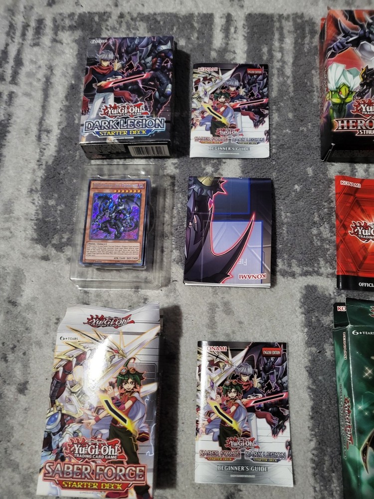 4 Lot Yu-Gi-Oh! Decks Spellcaster's Command Saber Force Hero Strike Dark Legion. Decks are complete. Extra cards at the bottom are included....