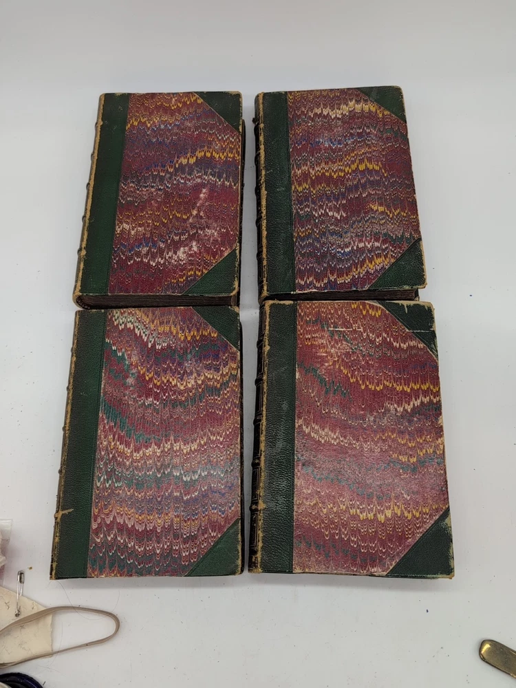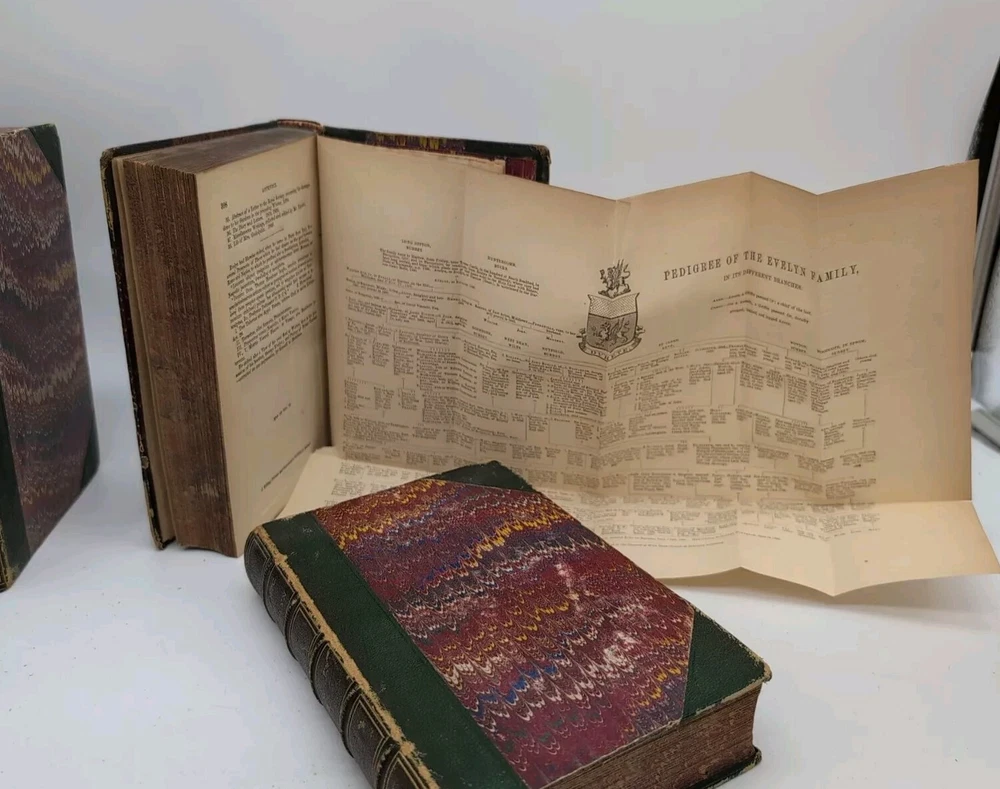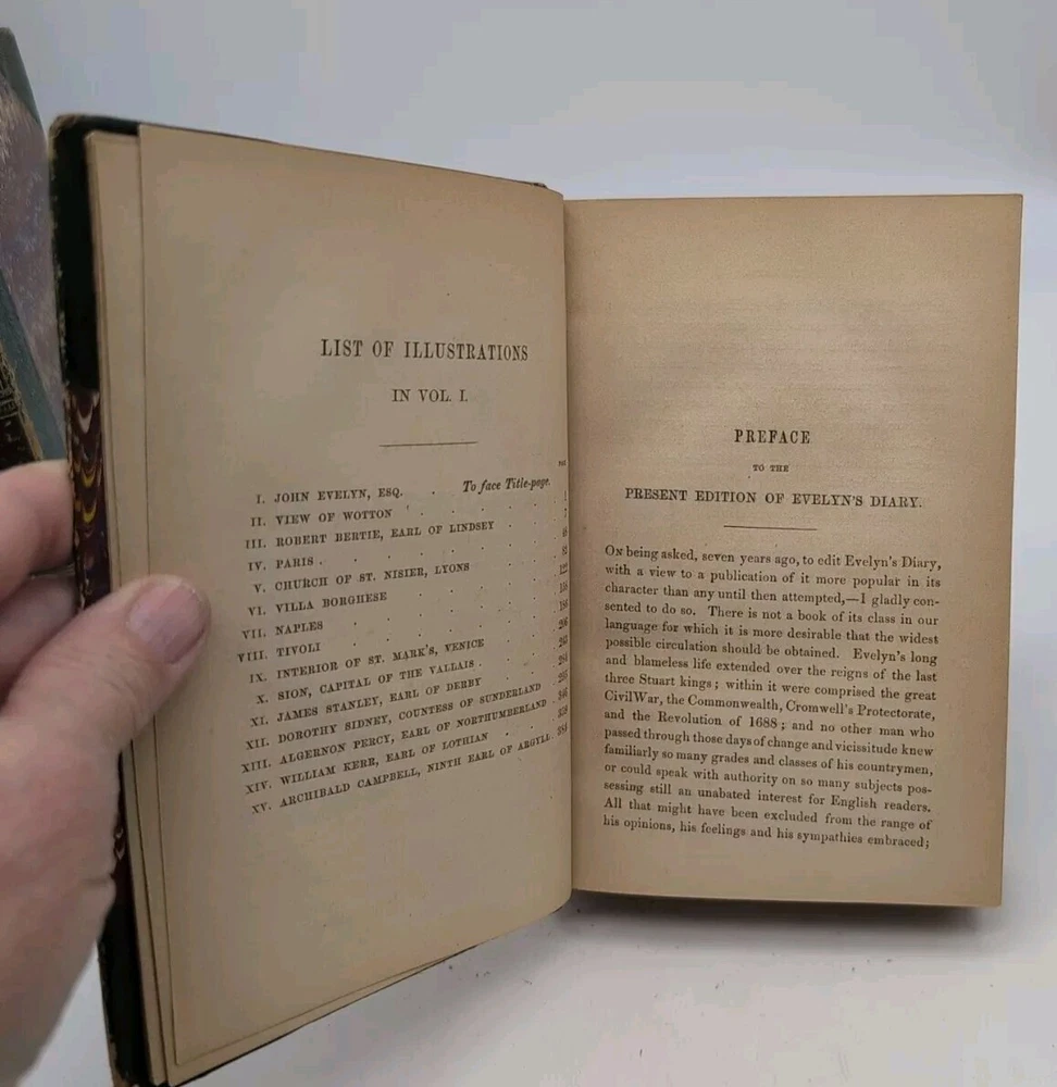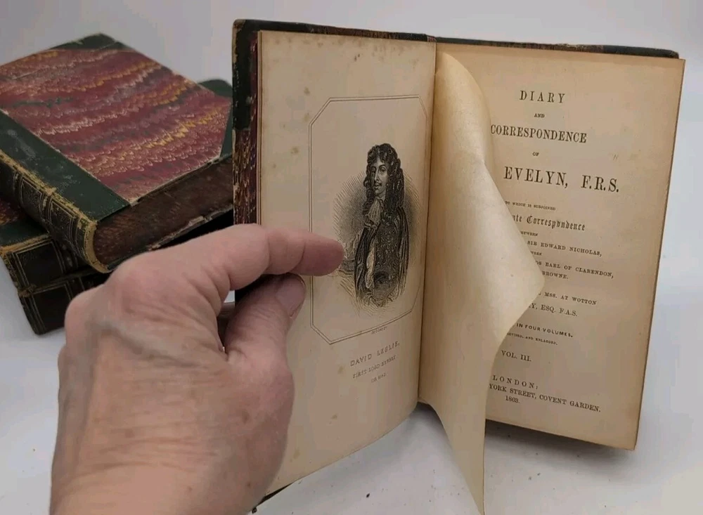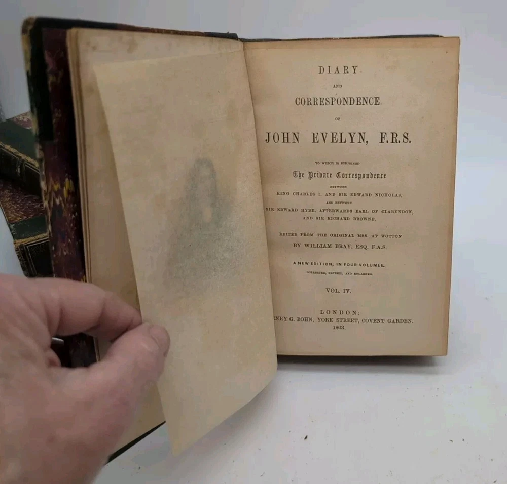 The product is a 4-volume set of John Evelyn's Diary, bound in quarter leather and published in London in the mid-19th century by Henry G. Bohn. This collector's edition set includes volumes 1 and 2 from 1862 and volumes 3 and 4 from 1863. The diary covers English history and provides readers with insights into the past through the eyes of the author, making it a valuable addition to any collection focused on English history and literature. Condition is pre-owned with some wear. Please review all photos before purchase as there are no returns. Ships with USPS Ground Advantage.