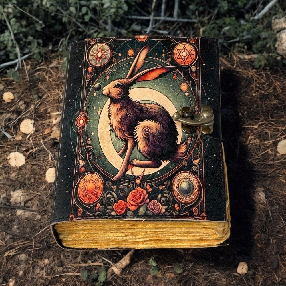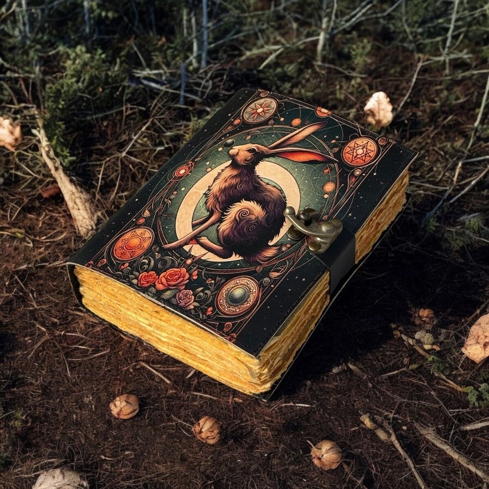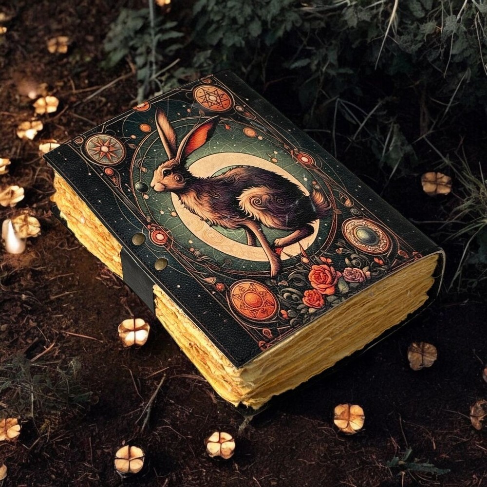400 Pages - bunny rabbit Grimoire Leather journal Notebook Journal for women - Fat journal handmade Deckle Paper Notebook Journal for gift •Fox Leather journal Rustic vintage leather • C-Lock brass • genuine buffalo leather • vintage deckle edge old paper. • 200 Sheet (400 pages both side) • Available all Size 7x5'' 8x6'' 10x7'' 13x10 '' Fox Leather journal Rustic Notebook for Writing & Sketching Gift for her, Handcrafted Diary, Book of shadows, Vintage book, Blank spell book Grimoire Journal - Blank spell witch, Book of shadows, Gifts For Men and Women ● Antique Paper - Vintage Journal is made of unique vintage paper which looks like it was pulled from history. You will love the old looking handmade cotton paper (200 pages) which is unique to our Vintage Journals. ● VINTAGE LOCK AND STURDY BINDING - The vintage lock will keep all your valuable writing locked inside.Sturdy hand stitched binding to make sure that no paper comes out loose from your vintage Notebook. ● Sketchbook is great for keeping by the bedside to jot down dreams, or for use as a diary or journal. ● It is a truly unique and wonderful gift for a friend, the men, women, and wiccans in your life! or to treat yourself to as a special keepsake ● our journals are influenced by symbolism that is derived from the Wicca/Pagan community, creating a personalized space where your inner creative genius can flourish. ● The paper is made from sustainable cotton and jute canvas. The paper is acid-free and pH neutral therefore is a timeless piece of art. ● Use Any Kind Of Pen - Sketch, Doodle, Write on your journal Notebook with a Calligraphy Pen Fountain Pen, Brush Pen, Ball Pen, Acrylic Colours, Watercolor and many more. Grimoire The Skull lover Leather Print journal Antique Notebook And Deckle Edge unlined paper. My clients usage: Gifts for him , valentines gift, anniversary or wedding or housewarming gifts, home decor, modern home decor and many more