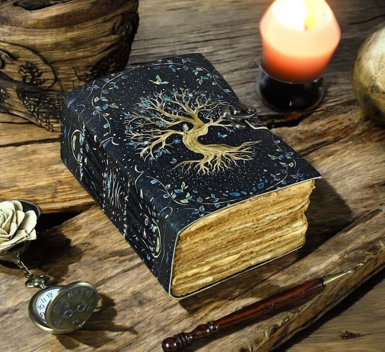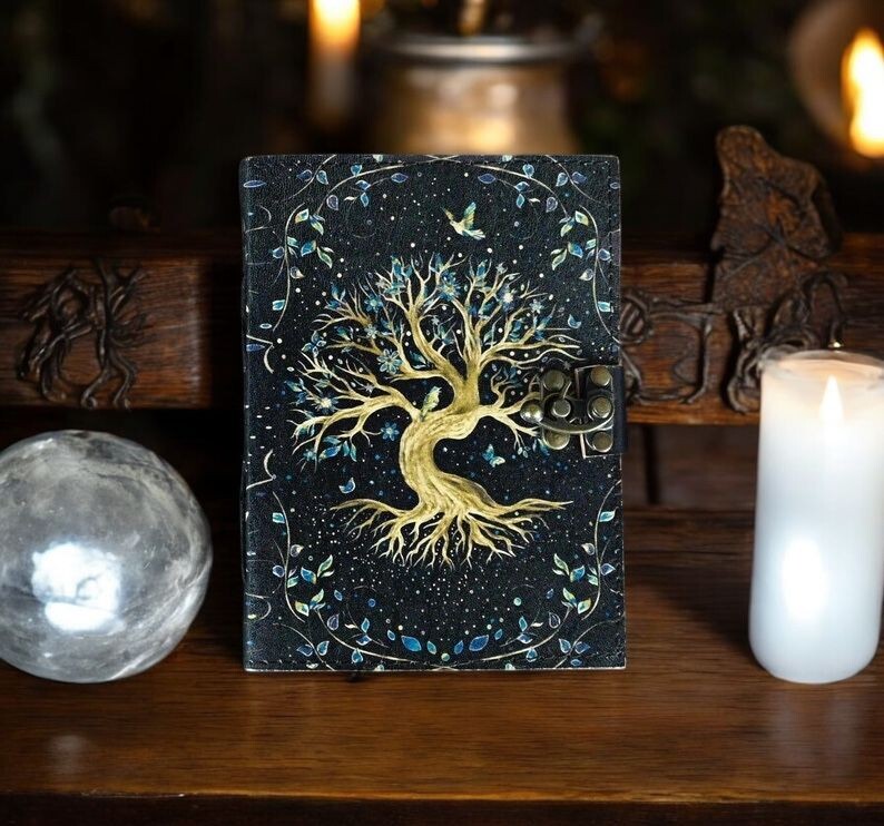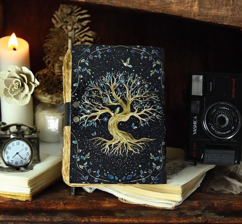 400 page Tree of Life Leather Journal Gothic Notebook Tree of life Grimoire Print - Vintage Handamde Journal Book of Shadows Witchcrafts Journal Gifts for Men Embrace the timeless elegance of The Raven Leather Journal Notebook by HandmadeJournalHub, a perfect blend of classic craftsmanship and modern functionality. Handcrafted with meticulous attention to detail, this journal features high-quality leather that not only adds a touch of sophistication but also ensures durability for years to come. Key Features: The Tree of life Leather Journal Gothic Notebook - Vintage Handamde Book of Shadows with Name, Personalized Gifts for Men, Dark Academia Gift, Handmade Paper: Each page of The Raven Leather Journal Notebook by HandmadeJournalHub is made from premium handmade paper, providing a unique texture and a high-quality writing experience. Perfect for writing, sketching, or jotting down your thoughts and ideas. Available in All Sizes: 7x5 inches 8x6 inches 10x7 inches 13x10 inches Whether you need a compact notebook for on-the-go notes or a larger journal for detailed entries and sketches, The Raven Leather Journal Notebook by HandmadeJournalHub is available in all sizes to suit your needs. Secure Brass C-Lock: The journal is equipped with a vintage brass C-lock, ensuring that your thoughts, ideas, and sketches remain secure and private. The elegant lock not only adds a layer of protection but also enhances the overall aesthetic of the journal. Ideal for writers, artists, students, or anyone who appreciates fine craftsmanship, The Raven Leather Journal Notebook by Taj Handicrafts is more than just a place to write—it's a companion that inspires creativity and captures memories. -- Junk Journal -- junk journals handmade -- Dungeons and Dragons Journal - DND -- Mothers Day Gift -- Nature journaling -- Instagram photobook or scrapbook -- Teen journal or girls' diary -- Travel diary -- Weight Watchers Records -- New baby records or journal -- Letters to your loved ones -- Letters to give to your children when they grow up -- Daily Notepad or Bullet Journal -- Scheduling and appointment reminders -- Life moments tracker -- Vacation scrapbook -- Story writing -- Notebook to write in
