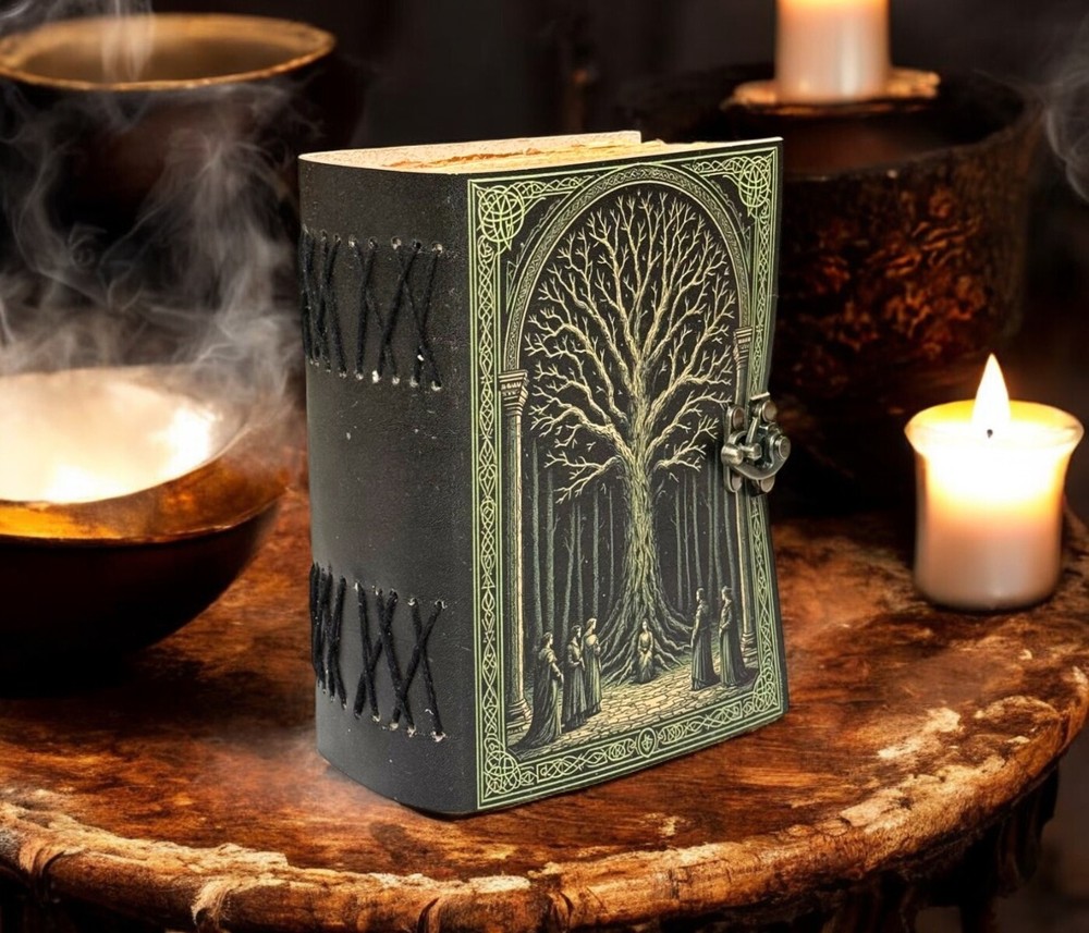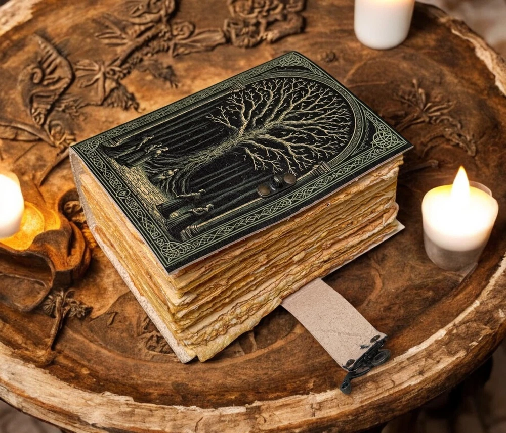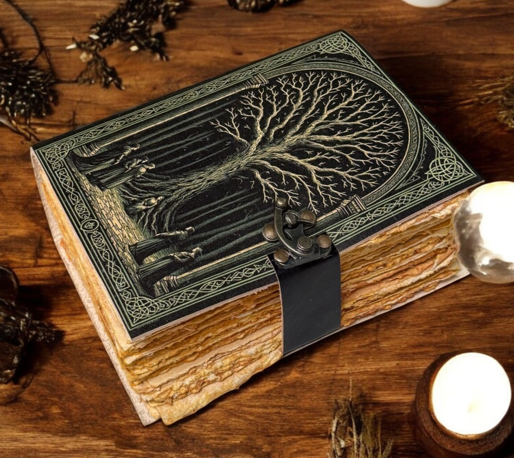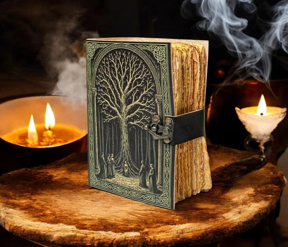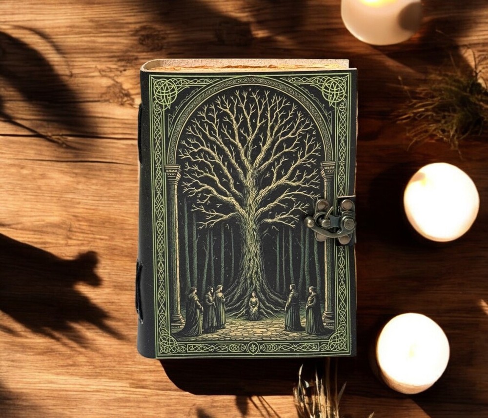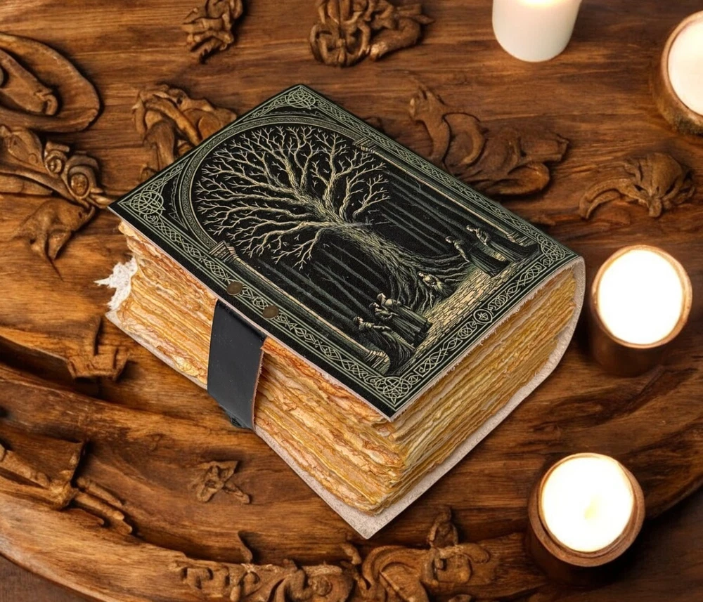 400 page Tree of Life Leather Journal Gothic Notebook Tree of life Grimoire Print - Vintage Handamde Journal Book of Shadows Witchcrafts Journal Gifts for Men Embrace the timeless elegance of The Raven Leather Journal Notebook by HandmadeJournalHub, a perfect blend of classic craftsmanship and modern functionality. Handcrafted with meticulous attention to detail, this journal features high-quality leather that not only adds a touch of sophistication but also ensures durability for years to come. Key Features: The Tree of life Leather Journal Gothic Notebook - Vintage Handamde Book of Shadows with Name, Personalized Gifts for Men, Dark Academia Gift, Handmade Paper: Each page of The Raven Leather Journal Notebook by HandmadeJournalHub is made from premium handmade paper, providing a unique texture and a high-quality writing experience. Perfect for writing, sketching, or jotting down your thoughts and ideas. Available in All Sizes: 7x5 inches 8x6 inches 10x7 inches 13x10 inches Whether you need a compact notebook for on-the-go notes or a larger journal for detailed entries and sketches, The Raven Leather Journal Notebook by HandmadeJournalHub is available in all sizes to suit your needs. Secure Brass C-Lock: The journal is equipped with a vintage brass C-lock, ensuring that your thoughts, ideas, and sketches remain secure and private. The elegant lock not only adds a layer of protection but also enhances the overall aesthetic of the journal. Ideal for writers, artists, students, or anyone who appreciates fine craftsmanship, The Raven Leather Journal Notebook by Taj Handicrafts is more than just a place to write—it's a companion that inspires creativity and captures memories. -- Junk Journal -- junk journals handmade -- Dungeons and Dragons Journal - DND -- Mothers Day Gift -- Nature journaling -- Instagram photobook or scrapbook -- Teen journal or girls' diary -- Travel diary -- Weight Watchers Records -- New baby records or journal -- Letters to your loved ones -- Letters to give to your children when they grow up -- Daily Notepad or Bullet Journal -- Scheduling and appointment reminders -- Life moments tracker -- Vacation scrapbook -- Story writing -- Notebook to write in