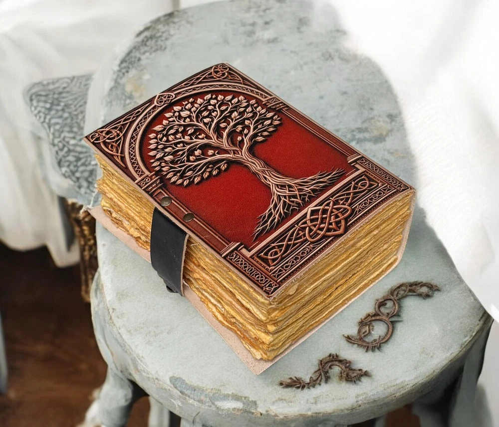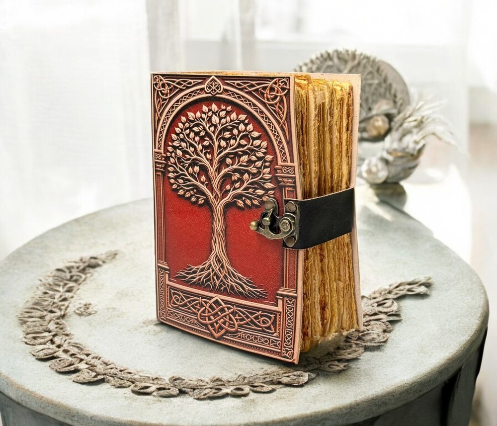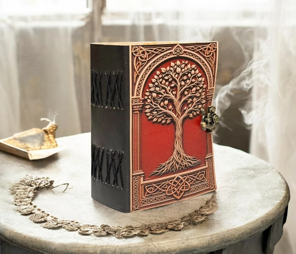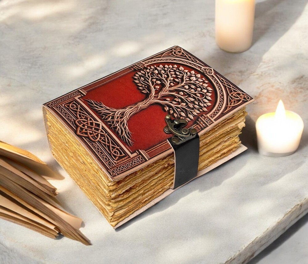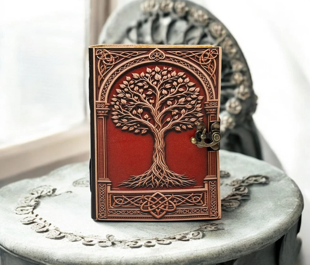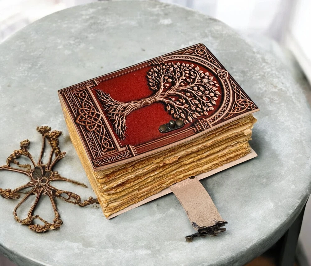 400 page Tree of Life Leather Journal Gothic Notebook Tree of life Grimoire Print - Vintage Handamde Journal Book of Shadows Witchcrafts Journal Gifts for Men Embrace the timeless elegance of The Raven Leather Journal Notebook by HandmadeJournalHub, a perfect blend of classic craftsmanship and modern functionality. Handcrafted with meticulous attention to detail, this journal features high-quality leather that not only adds a touch of sophistication but also ensures durability for years to come. Key Features: The Tree of life Leather Journal Gothic Notebook - Vintage Handamde Book of Shadows with Name, Personalized Gifts for Men, Dark Academia Gift, Handmade Paper: Each page of The Raven Leather Journal Notebook by HandmadeJournalHub is made from premium handmade paper, providing a unique texture and a high-quality writing experience. Perfect for writing, sketching, or jotting down your thoughts and ideas. Available in All Sizes: 7x5 inches 8x6 inches 10x7 inches 13x10 inches Whether you need a compact notebook for on-the-go notes or a larger journal for detailed entries and sketches, The Raven Leather Journal Notebook by HandmadeJournalHub is available in all sizes to suit your needs. Secure Brass C-Lock: The journal is equipped with a vintage brass C-lock, ensuring that your thoughts, ideas, and sketches remain secure and private. The elegant lock not only adds a layer of protection but also enhances the overall aesthetic of the journal. Ideal for writers, artists, students, or anyone who appreciates fine craftsmanship, The Raven Leather Journal Notebook by Taj Handicrafts is more than just a place to write—it's a companion that inspires creativity and captures memories. -- Junk Journal -- junk journals handmade -- Dungeons and Dragons Journal - DND -- Mothers Day Gift -- Nature journaling -- Instagram photobook or scrapbook -- Teen journal or girls' diary -- Travel diary -- Weight Watchers Records -- New baby records or journal -- Letters to your loved ones -- Letters to give to your children when they grow up -- Daily Notepad or Bullet Journal -- Scheduling and appointment reminders -- Life moments tracker -- Vacation scrapbook -- Story writing -- Notebook to write in