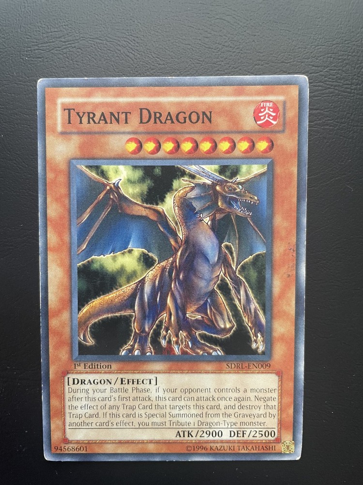WELCOME TO OUR EBAY STORE! We are a Table-top game store located in Wilmington, North Carolina with a wide selection of Board Games, Card Games, RPGs, Miniatures, and more! We ship out any orders placed before 3pm EST the same day they are placed, Monday-Friday! *Orders placed over the weekend will be marked as shipped, but will not be received by the postal service until Monday morning. This listing is for 4x Tyrant Dragon - SDRL-EN009 - Common - 1st Edition from Structure Deck: Rise of the Dragon Lords in Lightly Played condition. (Stock image of Tyrant Dragon - SDRL-EN009 - Common - 1st Edition from Structure Deck: Rise of the Dragon Lords) Condition: Lightly Played Finish: {product.finish} Language: English Set: Structure Deck: Rise of the Dragon Lords All images displayed in this listing are stock images used by our inventory system to represent the card being sold, and does not display the condition/quality of the card. Due to the rate we receive and sell copies of cards, the quantity of cards available, and the limitations of our system, we are unfortunately unable to display images of each card available. We use TCGPlayer's condition guide to grade each of our cards, descriptions of each condition and what kind of wear to expect can be found below. If a card is over $50 of value, feel free to to request scans/images of the actual card and we will get them to you as soon as we can. If you have any questions about the item, please contact us! CONDITION GUIDE: Near Mint (NM) Cards in Near Mint condition show minimal wear from shuffling, play or handling and can have a nearly unmarked surface, crisp corners and unblemished edges outside of a few slight flaws. A Near Mint card may have slight edge wear or a scratch or three, but overall look nearly unplayed with no major defects. The acceptable range of cards within the Near Mint condition includes both cards with no imperfections and cards with a few slight imperfections. Lightly Played (LP) Cards in Lightly Played condition may have minor border or corner wear, scuffs or scratches. There are no major defects such as grime, bends or issues with the structural integrity of the card. Noticeable imperfections are okay, but none should be too severe or at too high a volume. The acceptable range of cards within the Lightly Played condition includes both cards with few or a handful of minor imperfections. Moderately Played (MP) Cards in Moderately Played condition can have border wear, corner wear, scratching or scuffing, creases or whitening or any combination of moderate examples of these flaws. A Moderately Played card may have some form of imperfection impacting a small area of the card from mishandling or poor storage, such as creasing that doesnʼt affect card integrity, in combination with other issues such as scratches, scuffs or border/edge wear. Heavily Played (HP) Cards in Heavily Played condition show a major amount of wear. Cards can show a variety of moderate imperfections along with creasing, whitening and bends. Heavily Played cards can also have flaws that impact the integrity of the card, but the card can still be sleeve playable. Damaged (DMG) Damaged cards show wear or imperfections beyond the standards for other conditions. Cards in Damaged condition can also exhibit an imperfection that may make the card illegal for tournament play, even in a sleeve. Cards in Damaged condition may have major border wear, corner wear, scratching or scuffing, as well as folds, creases, tears or other damage that impacts the structural integrity of the card. Any non-altering ink, water damage, or peeling will usually cause a card to be considered as Damaged condition. Looking to buy more cards? Browse our collection of available card game singles on our eBay Store Page ! Have all your cards shipped together and take advantage of our savings when you buy multiple cards in a single order!