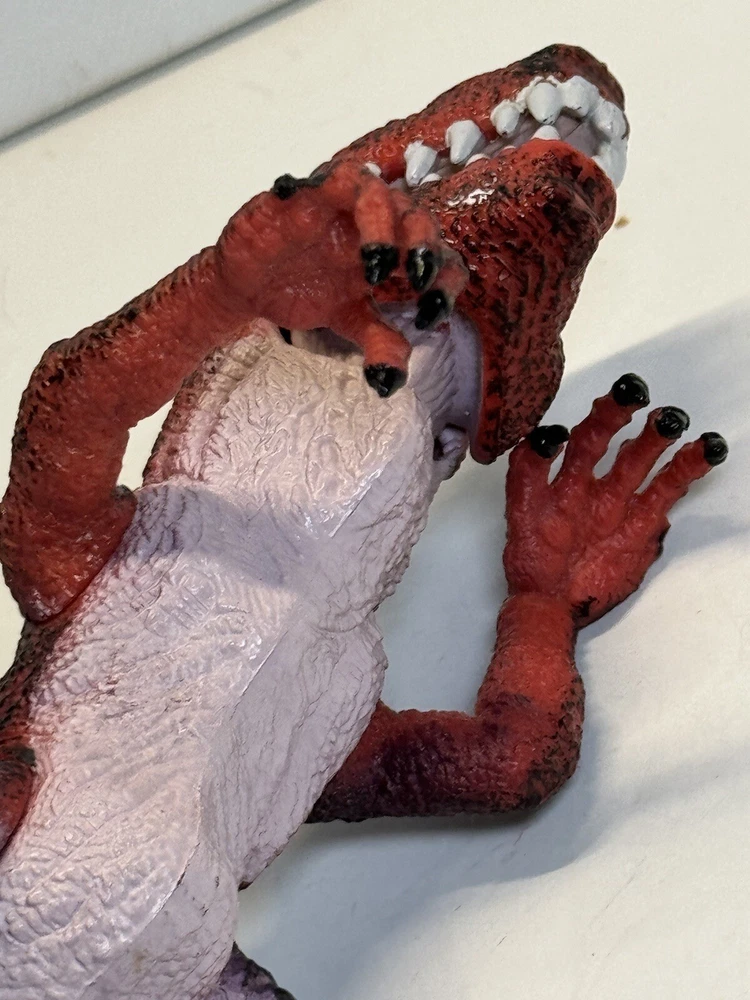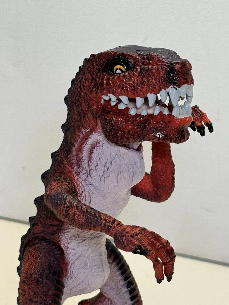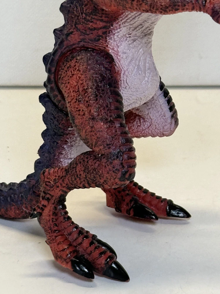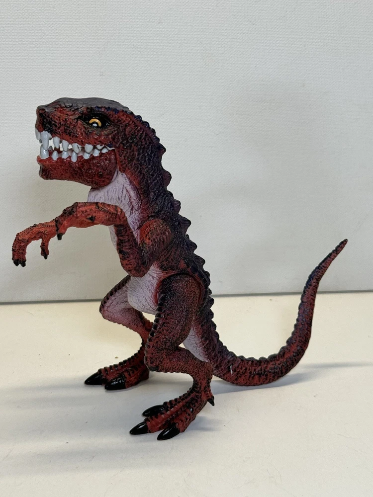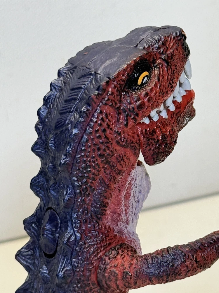 5" Tall Razor Fang Baby Godzilla Trendmasters Movie Action Figure 1998. The figure is in good shape, it has light wear. It is approx 5” tall, the action attack feature works. He figure has a red body with purple stripe down the back area. The joints are still tight. Please see photos.