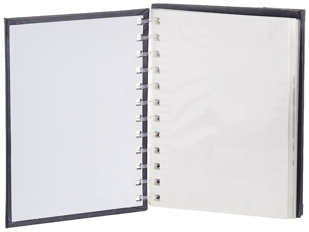 Leatherette cover Spiral binding Mini album or desktop easel Holds 50 photos up to 4"x6" Photo safe: acid, lignin and PVC free