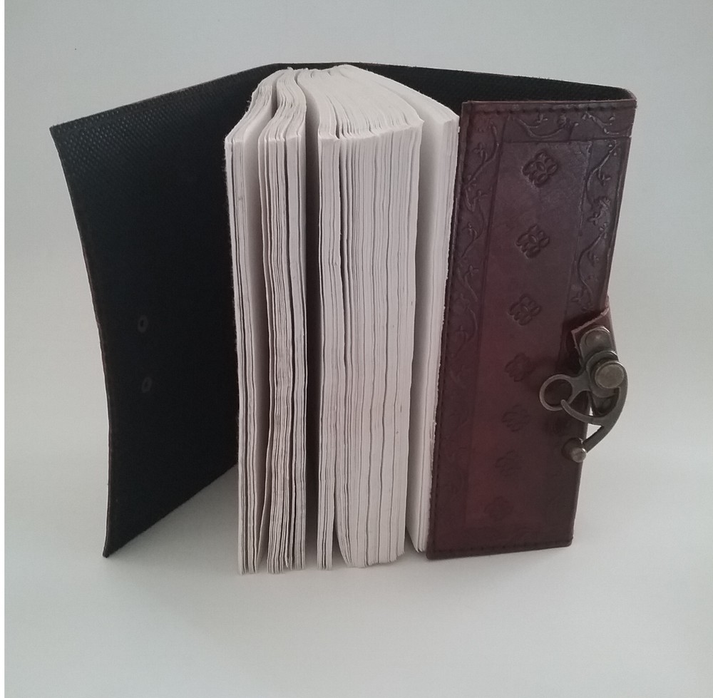 5.5X7x1.5" EMBOSSED LEATHER BOUND DOUBLE DRAGON Journal Writing Sketch Book. Inside this 1.5 inch thick leather bound journal you will discover thick blank off-white plain paper. I have one copy that is unwrapped and that is the one pictured. It was never used. I have 3 more of the exact same item style. They are still wrapped in their original factory packaging. There are 4 Journals total. You can buy one or more, just let us know so we can get the correct shipping. We always ship quickly.