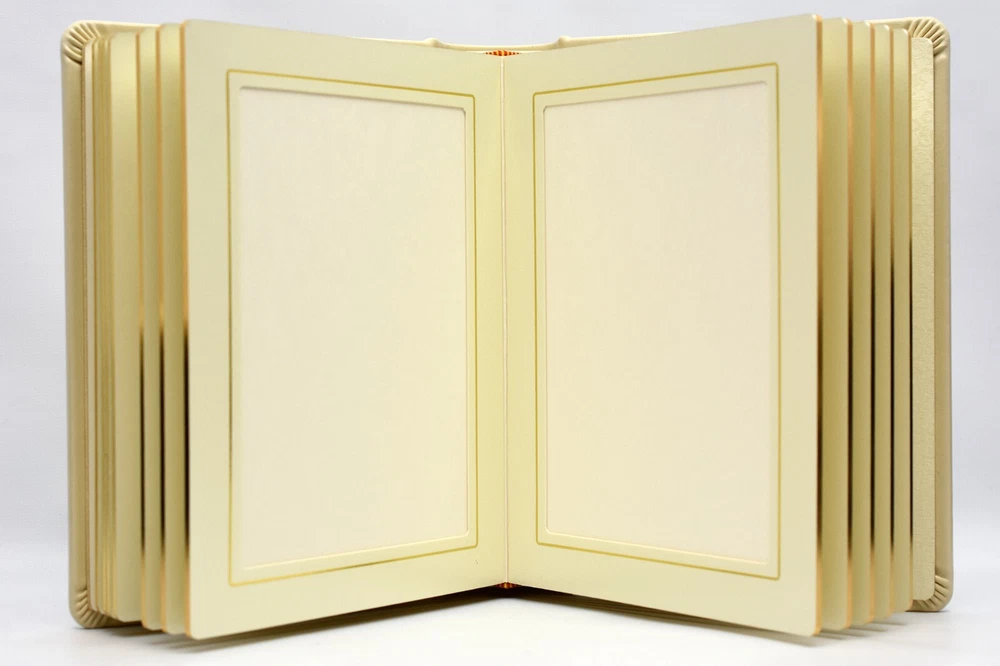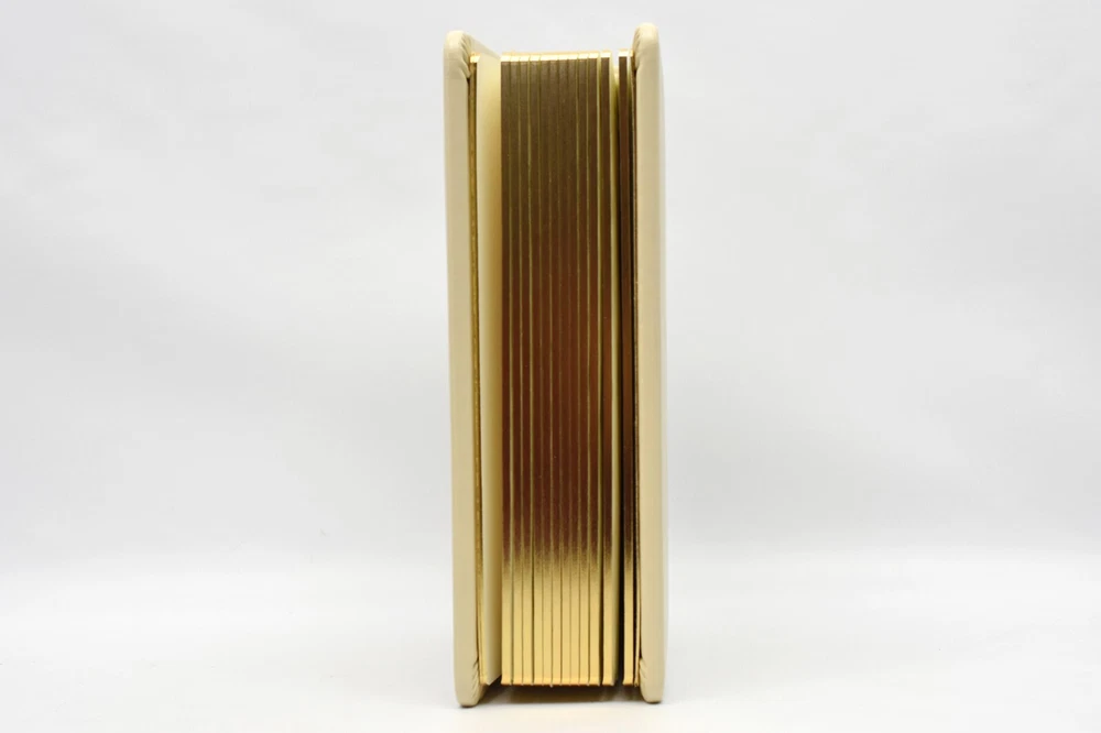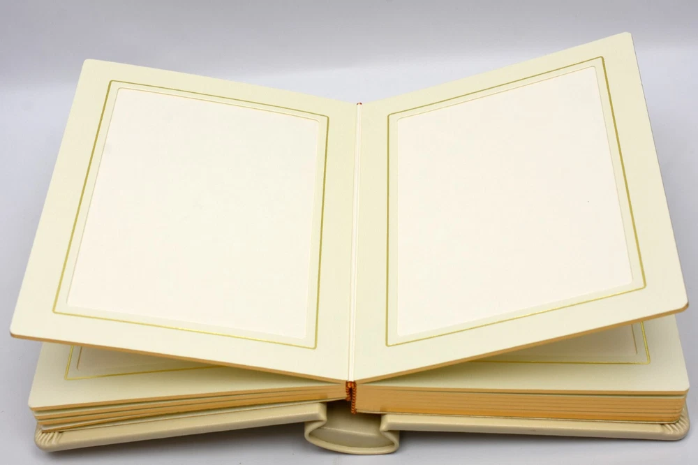 For sale here is a 5x7 Photo Album in the color Ivory. -The album is crafted in a stunning ivory color, adding a touch of sophistication to any décor. -The luxurious gilded edges enhance its beauty, making it a perfect keepsake that reflects your style and love. -Holds up to 24 5x7 photos, allowing you to showcase your most treasured moments. -Designed with high-quality leather material to ensure longevity and protection for your photos. -Ideal for weddings, family gatherings, or as a thoughtful gift for loved ones. This item is packaged safely and shipped quickly with USPS Flat Rate Priority Mail from New Jersey.