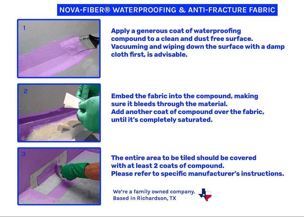 Introducing , our latest innovative solution for all your bathroom and shower waterproofing needs. This product is specifically designed to reinforce paint-on waterproofing membranes such as Red Gard, Hydroban, Aqua Defense, and similar products used for indoor tile and stone installations in bathrooms, showers, and steam rooms. is a thin, flexible non-woven fabric that strengthens weak areas in your shower or bathroom, including inside and outside corners, seams between tile backer boards, hairline cracks in the substrate, around shower niches, and transitions between different materials. Unlike traditional fiberglass mesh tape, is made entirely of 100% polymer-based material, just like the membrane manufacturer's own product. It offers superior flexibility and ease of use, and is compatible with any brand of latex-based waterproofing membrane. It's important to note that is not suitable for stucco or roofing applications. By using in conjunction with a paint-on waterproofing membrane, you can ensure a long-lasting and effective waterproofing solution for your bathroom or shower. ✅New and improved version, now even denser, stronger, longer and more flexible than before ✅Now contains no fiberglass, just like the membrane manufacturer's own product ✅Matches performance of oem product, use with any liquid (latex based) waterproofing membranes ✅Works perfectly with Redgard, Hydro Ban, Hydro Barrier, AquaDefense and others ✅Made from alkali resistant synthetic fibers. Outperforms fiberglass mesh tape.