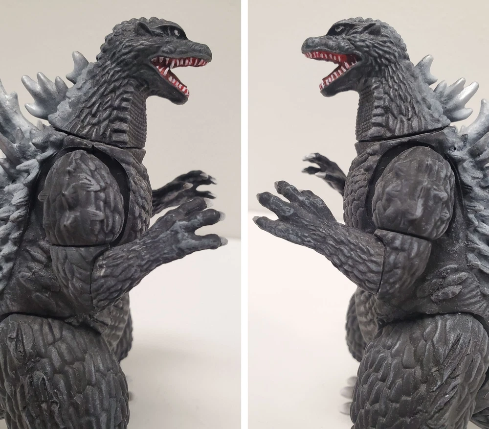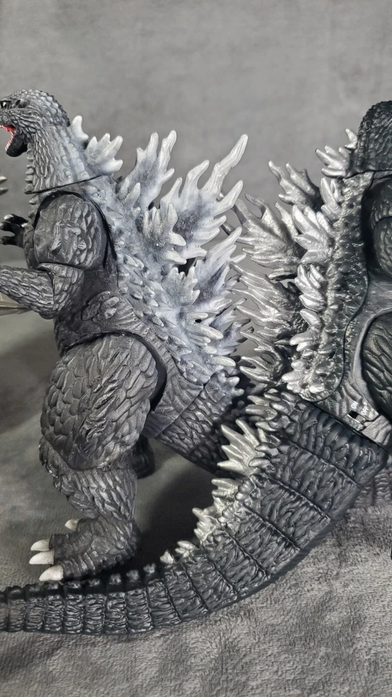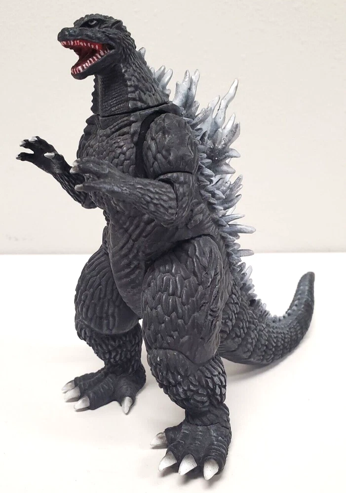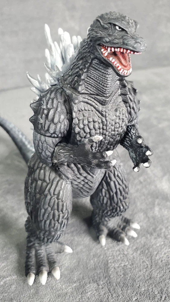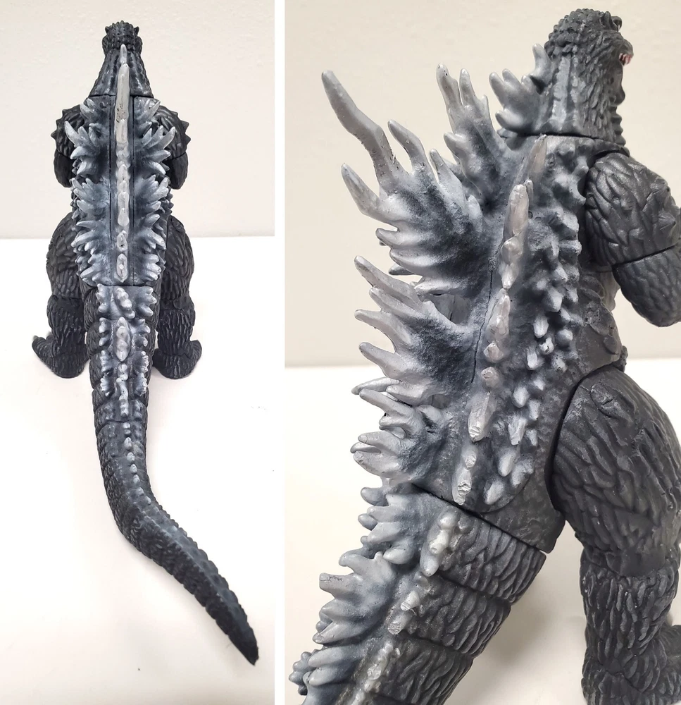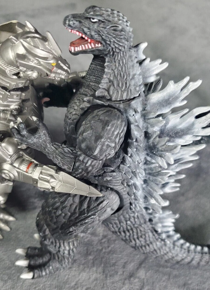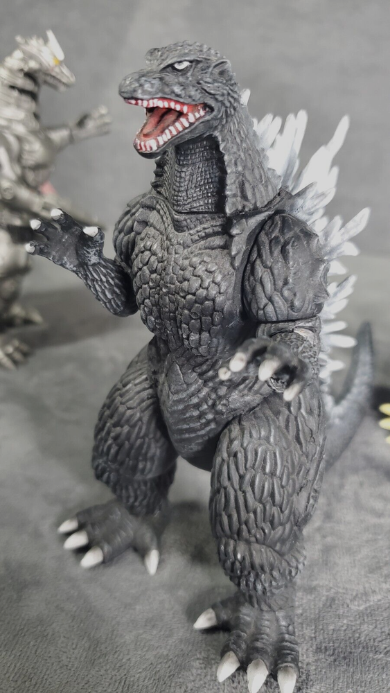 This is a customized 2002 6.5 inch "Sound Monster King" GODZILLA 2003 (KiryuGoji) figure by Bandai Japan. From Godzilla Against Mechagodzilla (2002). Condition is "Used". Please examine photos for condition. Since it was originally a battery-operated toy, the joints and seams were filled with putty then repainted. The leg articulation was sacrificed due to this, but the articulation at the neck, arms and elbows remains. Painted primarily with a brush and airbrush using Mr. Color, finish sprayed with a matte top coat. No box. Note: Listing includes side-by-side photos with an unmodified Sound King of the Monsters Godzilla 2003 figure for comparison only. Likewise, the 6 inch Kiryu in photos is for illustrative purposes. Shipping options are USPS Ground Advantage (default) and USPS Priority Mail.