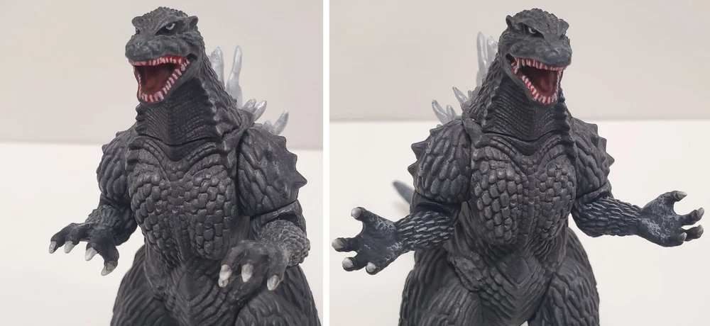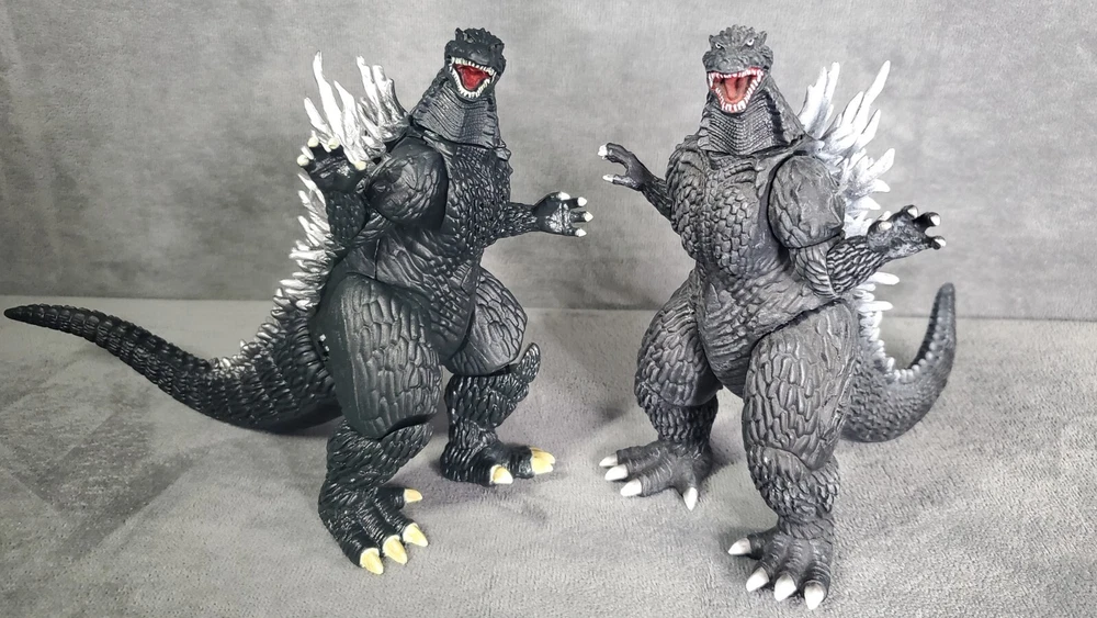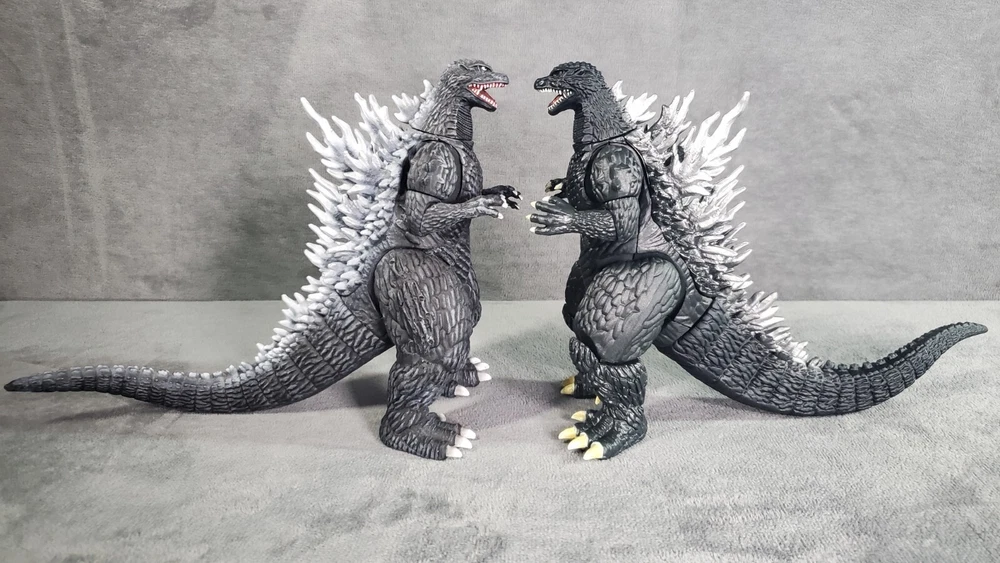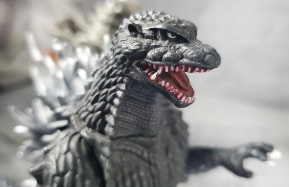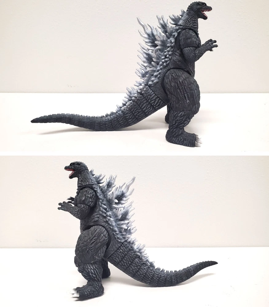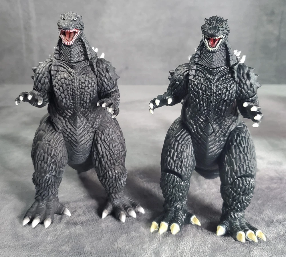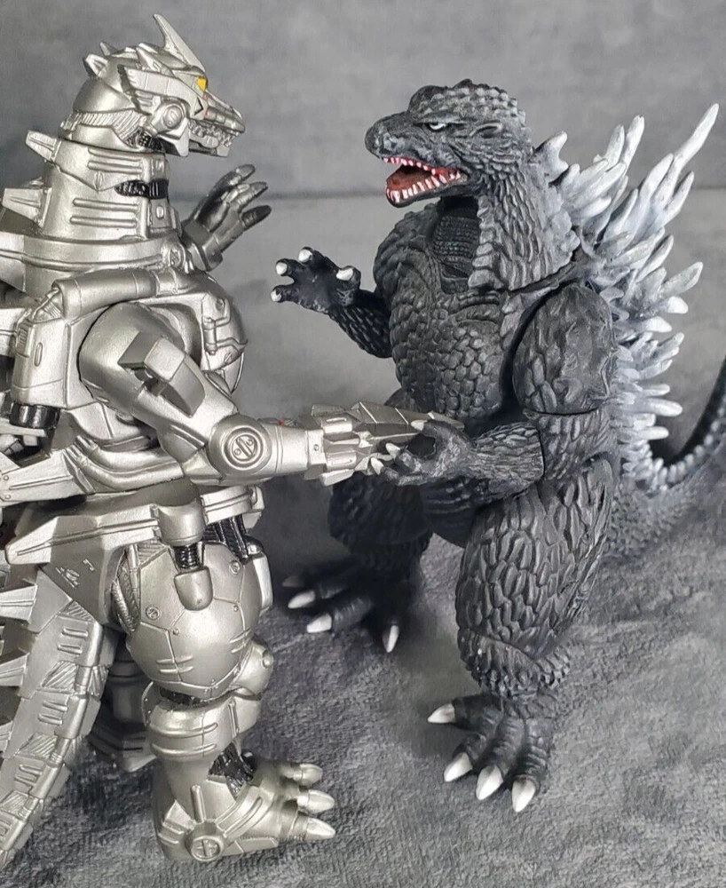 This is a customized 2002 6.5 inch "Sound Monster King" GODZILLA 2003 (KiryuGoji) figure by Bandai Japan. From Godzilla Against Mechagodzilla (2002). Condition is "Used". Please examine photos for condition. Since it was originally a battery-operated toy, the joints and seams were filled with putty then repainted. The leg articulation was sacrificed due to this, but the articulation at the neck, arms and elbows remains. Painted primarily with a brush and airbrush using Mr. Color, finish sprayed with a matte top coat. No box. Note: Listing includes side-by-side photos with an unmodified Sound King of the Monsters Godzilla 2003 figure for comparison only. Likewise, the 6 inch Kiryu in photos is for illustrative purposes. Shipping options are USPS Ground Advantage (default) and USPS Priority Mail.