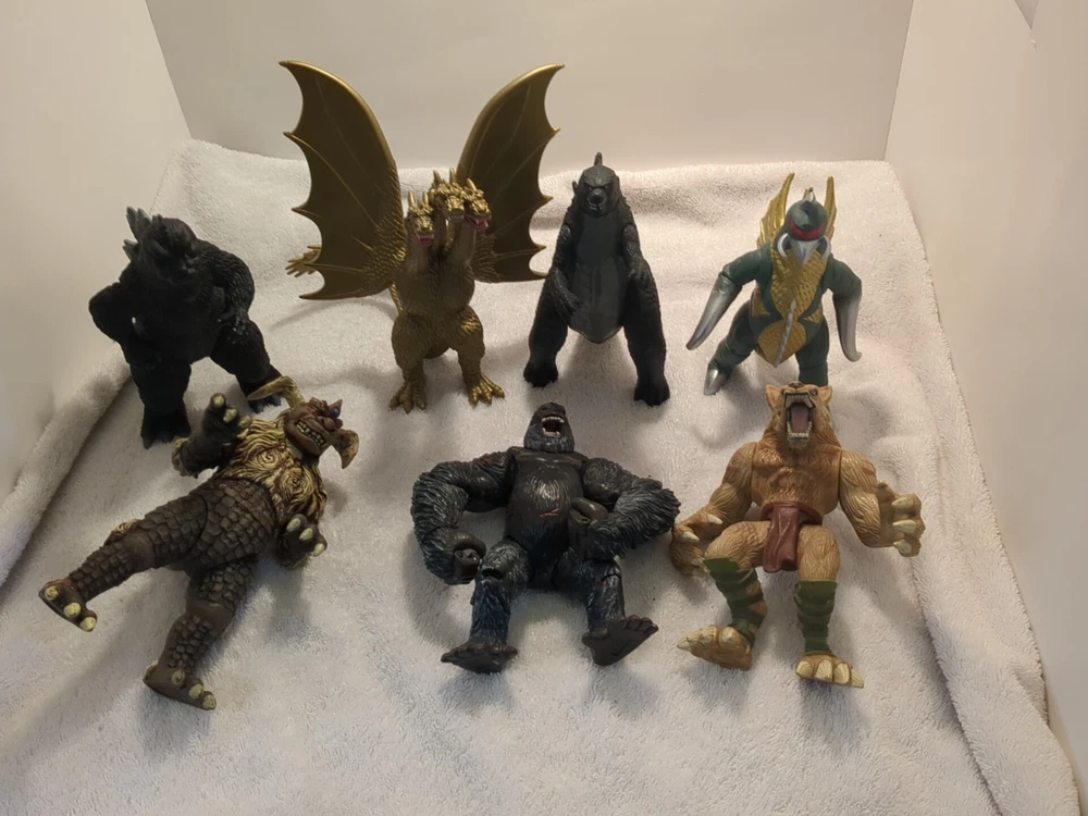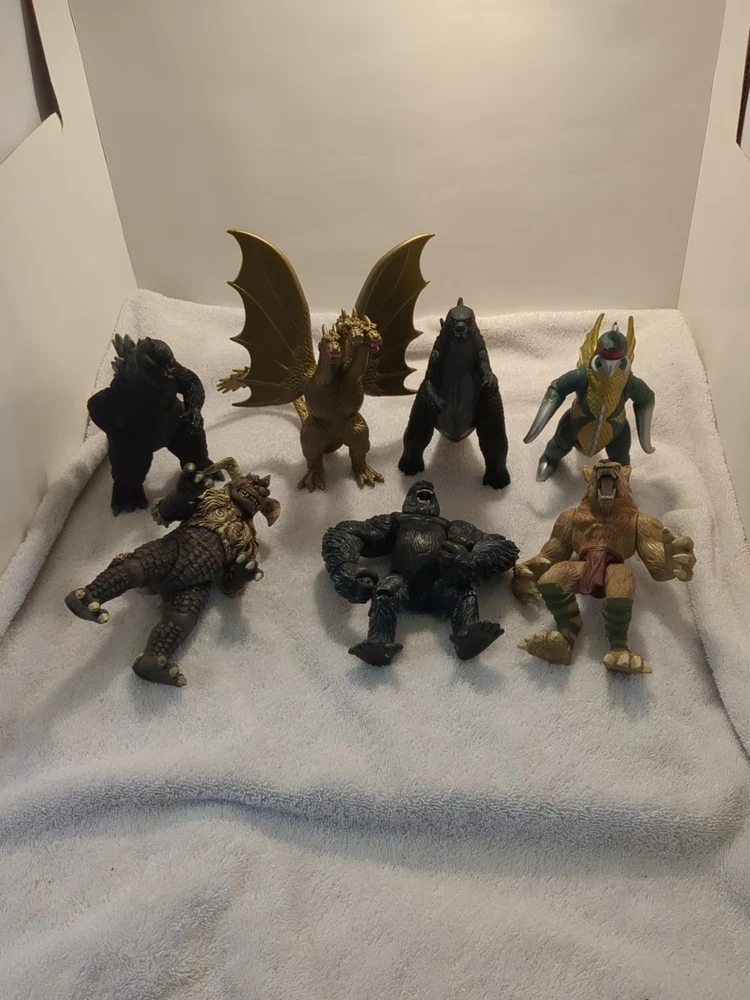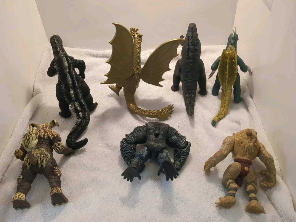 7 Godzilla 2000 Millennium Action Figure Godzilla King Kong GASHAPON Kaiju and otherr characters. Monsters from various series and lines. Godzilla, King Ghidorah, King Kong, Werewolf and more. Items are in used/played with condition unless noted otherwise. Items are sold as is, conditions may vary, some items may be for parts or repair, see pictures for details and conditions. Terms of sale All sales are final. No returns. Shipping Information Buyer responsible for shipping costs unless noted otherwise