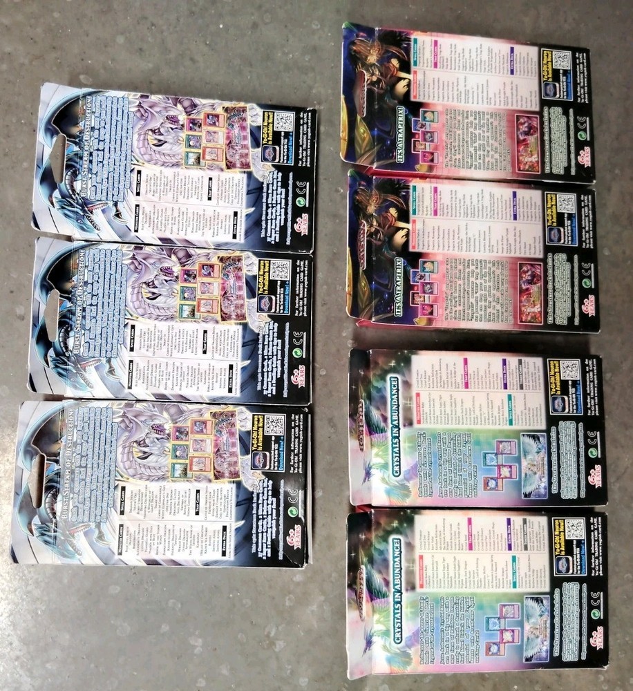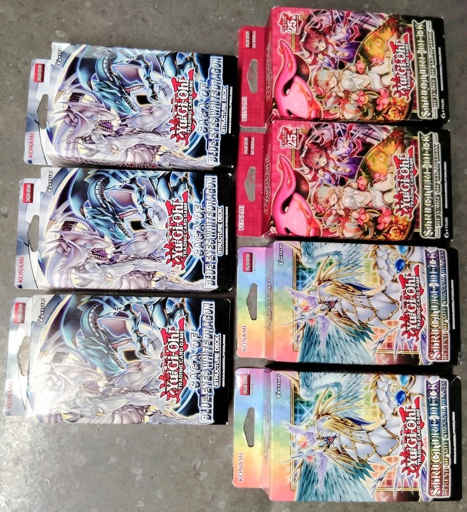 You are buying 7 sealed decks exactly as seen. In the photos. Three Saga of Blue Eyes White Dragon, Two Beware of Traptrix, and Two Legend of the Crystal Beasts. All are new, sealed, and in good condition. See photos for more information and to view exactly what you will receive. Free Shipping! *******