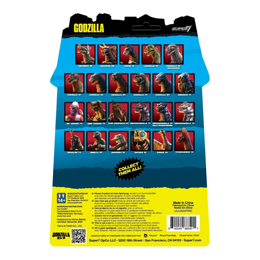 '75 Mechagodzilla ReAction Figure In the 1975 Toho film, Terror of Mechagodzilla , the robotic kaiju teams up with Titanosaurus to attack Tokyo, forcing Godzilla and humanity into an uphill battle! This 3.75” scale, articulated Toho ReAction Figure of Mechagodzilla ’75 features the metal menace ready for round two with the King of the Monsters, and comes packed on a blistered cardback. You decide who is the real King of the Monsters by adding this Mechagodzilla ‘75 ReAction Figure to your growing kaiju collection!