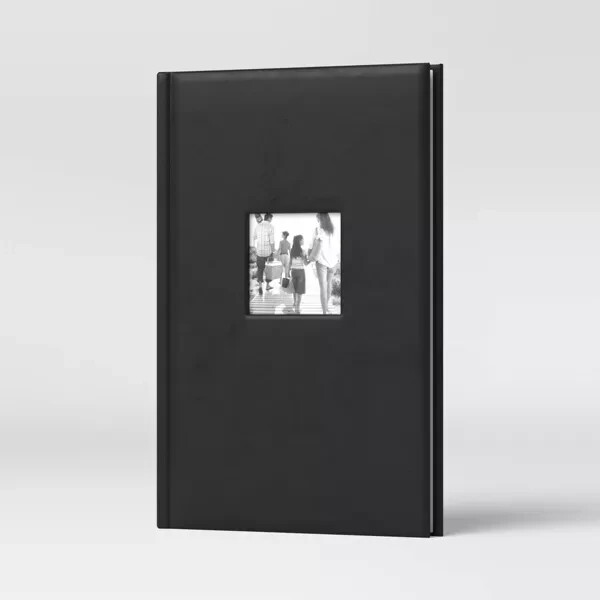 40 pages, holds a total of 240 images Fits 4x6in images, 3 per page Paper pages with memo space and clear plastic photo cover Front cover holds 1 - 3.5x3.5" photo Acid free pages Description Showcase and share your most prized life events and moments with this Classic Photo Album by Threshold™. Each page has space to enter in memo's, holding a total of 240 - 4x6in photos. The front and back cover are constructed of a matte black faux leather (PU) perfect for any household or gift recipient.