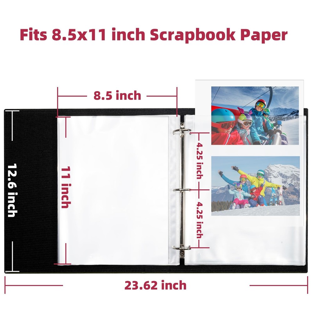 This scrapbook album is a treasure trove of memories, crafted to capture the essence of life's most meaningful moments. It features a unique blend of photos, handwritten notes, and memorabilia, all carefully arranged to tell a personal story. You can document your travel adventures, adding postcards and ticket stubs alongside photos; create a baby scrapbook to track milestones and firsts. Additionally, it can be a wonderful gift for friends and loved ones, helping them to relive the special moments you've shared together. Scrapbook Photo Album: The interior includes 30 sheets (60 pages) of 8.5x11 inch scrapbook pages, with plastic sleeves to protect and showcase your creative work. Easily personalize your photo album with extra pages, embellishments, or custom engravings to make it truly unique Premium Leather Cover: Our album is made of premium quality faux leather, ensuring durability. The cover features a window design that allows you to freely change photos, and the window is equipped with a PVC transparent protective film to prevent photos from being scratched Acid-Free and Archival Plastic Sleeves: The scrapbook album includes 30 top-loading scrapbook page protectors. The transparent, waterproof, and acid-free plastic sleeves protect your DIY creations, ensuring they remain safe and intact D-Shaped 3-Ring Design: The D-shaped 3-ring binder allows you to easily add or remove pages. The 1-inch rings provide ample space to add more pages, and the D-shape design ensures the album remains flat after turning the pages Versatile Uses: It is perfect for weddings, graduations, vacations, family, baby and other occasions. It can also be used as a scrapbook album, family tree album, recipe binder, sheet music binder, etc. Our faux leather album is an ideal choice for capturing precious moments in life