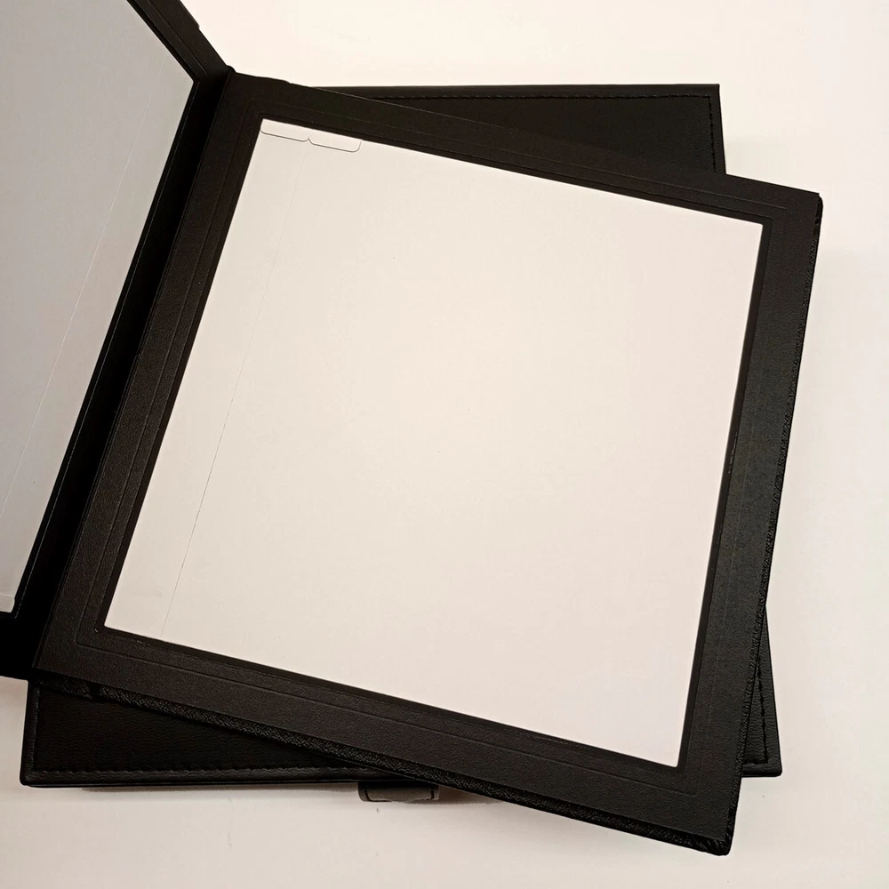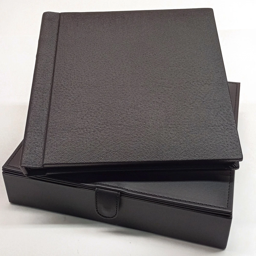 8x8 photo album from Midwest Photographic. The book-bound album comes in black faux leather, perfect for any occasion. Each album contains 5 pages and can hold up to 10 prints, with bordered pages that add an elegant touch. The album is designed with self-adhesive pages, making it easy to place and secure your photos without the need for additional tapes or glues. Photo size is 8x8. The album comes with a matching box for safekeeping and easy storage.