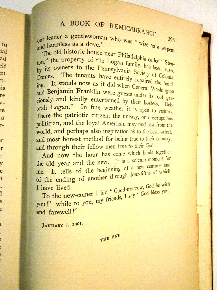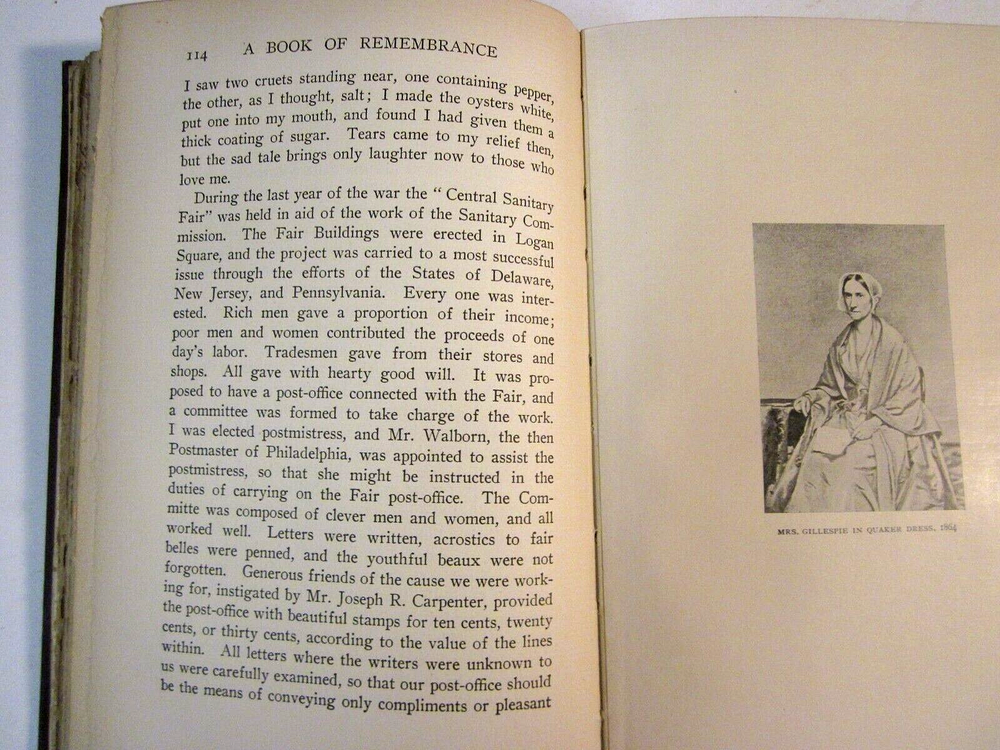 HERE is a GOOD+ Copy of a VERY SCARCE ORIGINAL -- Second Edition , 1901 -- of Elizabeth Gillespie's personal memoirs of her activities with ** BENJAMIN FRANKLIN . ( She was Ben's Great Granddaughter ). This Deluxe Hardcover Book is in Fine Condition, featuring many Illustrations, gold gilding on all pagetops and a tissue-protected photo of Mrs. Gillespie at home ( See photo of the title page herein). It's Clearly a RARE BOOK -- NONE like it are Listed on Ebay -- and it's Literary and Historic Value have prompted recent re-issues. This Copy is obviously your BEST Quality / Price Offer.