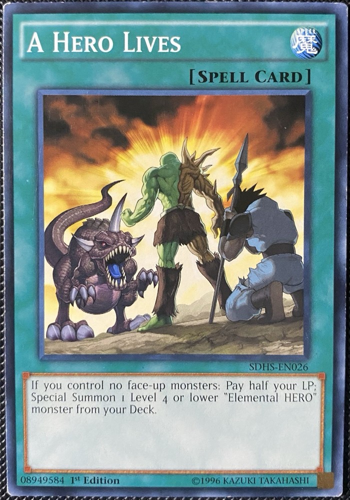 | Card Text | When you control no face-up monsters: Pay half your Life Points; Special Summon 1 Level 4 or lower "Elemental HERO" monster from your Deck. |