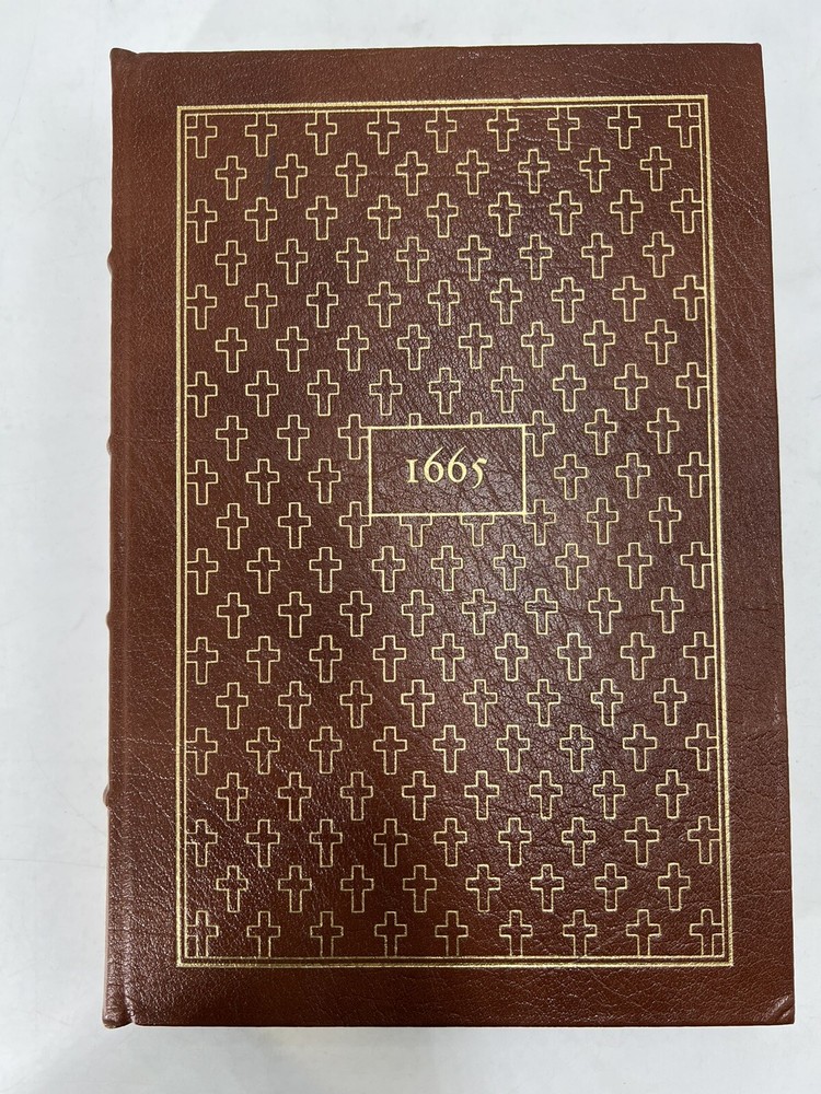A Journal of The Plague Year 1665 Daniel Dafoe Easton Press Leather Bound HC. Book is in good condition with no writing or highlights Does show minor shelf wear on the corners but in overall good condition. There are white marks on the edges. Please see pictures FREE SHIPPING