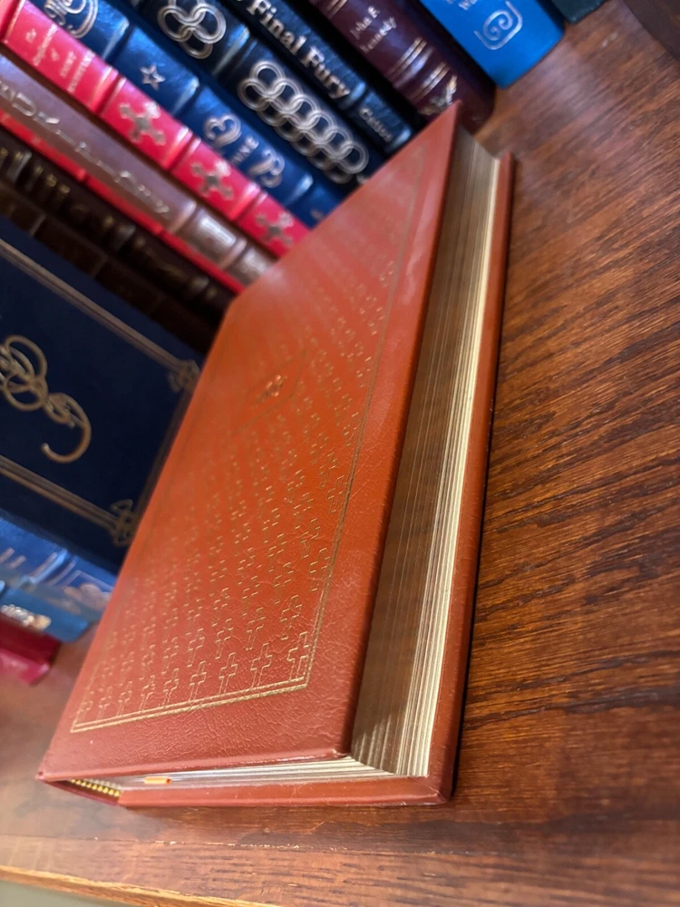 Easton Press(1978)full leather hardcover, 22K gold accented, decorated endpapers, ribbon marker, full color illustrations, book is in “Fine” condition, obviously unread and appearing unused, blank bookplate affixed to early page, minor scuffing to brown leather where book was shelved next to black leather book, pictured along spine.........(please see my many feedbacks for an idea of how I grade books and generally do business) (see my EBay store for the finest books & prices, many signed).......(No remainder marks or price-clipping)...............Always shipped in a box, well protected