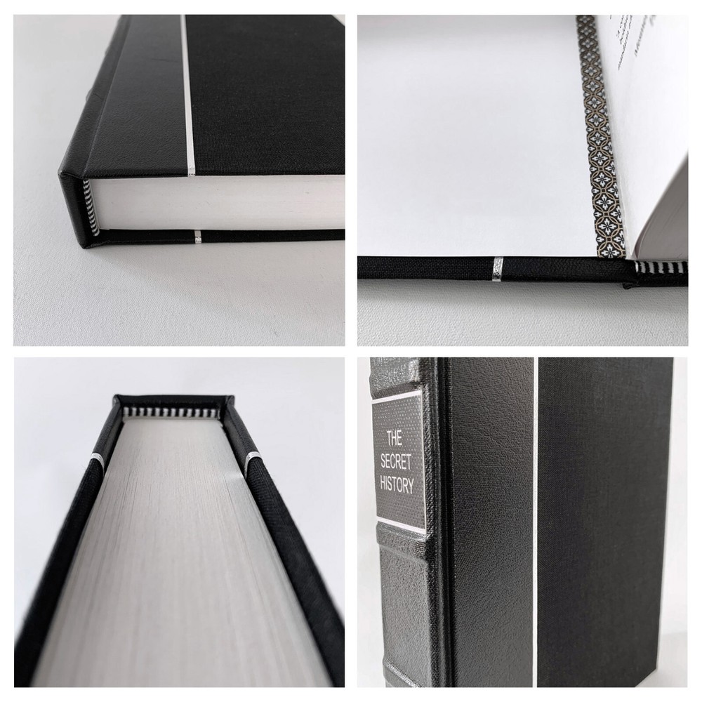 A beautiful hardcover book, quarter-bound in leather Personalized inscription available Binding: Limited edition Free worldwide tracked shipping Raised bands on spine Detailed leatherwork Black and white headbands Traditional spine title Free perzonalised inscription Limited edition binding (1500 available) Size 210 x 140mm Price : This listing is for the commission of professional bookbinding work. The all-inclusive price includes the bookbinding fee, the finished product as advertised, and tracked delivery. Authenticity : I am a professional bookbinder with over 30 years experience. My commissions and fine bindings are collected all over the world by bibliophiles, book enthusiasts and art collectors. Inscription : Optional personalized inscription on inside cover. Popular examples are Jane Smith March 2025 or Ex Libris Jane Smith or anything up to 250 characters. Ex Libris means from the library of / book belongs to . Your inscription will be positioned and formatted so it looks the absolute best it possibly can. Limited Edition : The traditional leather-bound binding is limited edition, just 1500 bespoke commissions available; the novel itself is the standard, currently published, unabridged version purchased to order. Binding : Presented in traditional leathercloth and Windsor bookcloth. Text-block : The complete and unabridged published novel. Paperback edition in English language. Bookbinding Commission : The price advertised is the fee for my services as a professional bookbinder, and a promise to deliver your book safely, as pictured* and as described. The book text-block has been paid for by myself, this includes all usual royalties paid in full. The fee you are paying is for the commission of bespoke work, for my expertise in bookbinding. The highly skilled work will provide protection and longevity, there are no alterations to the pages of the published book text-block. *Depending on the number of pages of the published novel, the depth of the book may be different than pictured.