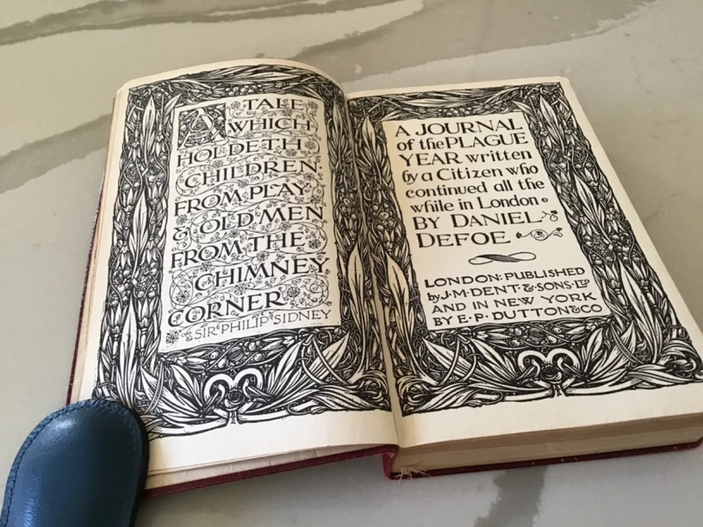 Red leather covers with gilt ..a lovely edition of a classic. Proceeds benefit the Friends of the Mt Top Library