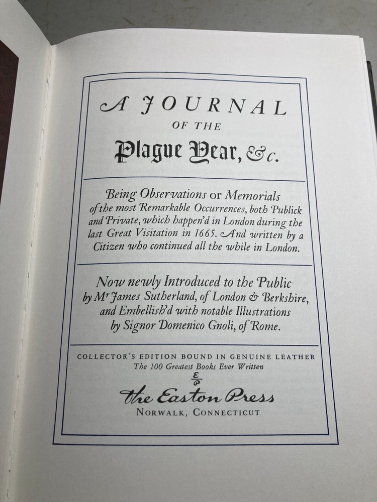 Features of Easton Press Books Tightly bound in genuine leather. 22kt gold accents deeply inlaid on the "hubbed" spine. Heavy duty binding boards enhance the book’s durability. Superbly printed on acid-neutral paper that lasts for generations. Sewn pages — not just glued like ordinary books. Handsome moiré endpages and a satin-ribbon page marker. Gilded page ends. Printed and bound in the USA using imported materials. Rigorous inspection at every stage ensures adherence to our exacting standards. Superb craftsmanship and commitment to quality. May be a bit dusty as they have been sitting on a shelf for many years. Pictures are of the actual book you will receive. This book will be shipped properly in a box to avoid any shipping damage and NOT in an envelope with no protection like other sellers. Selling as is no returns.