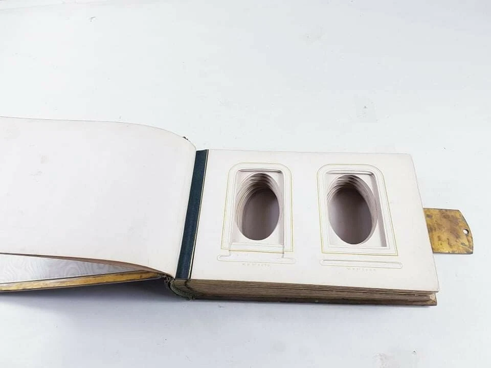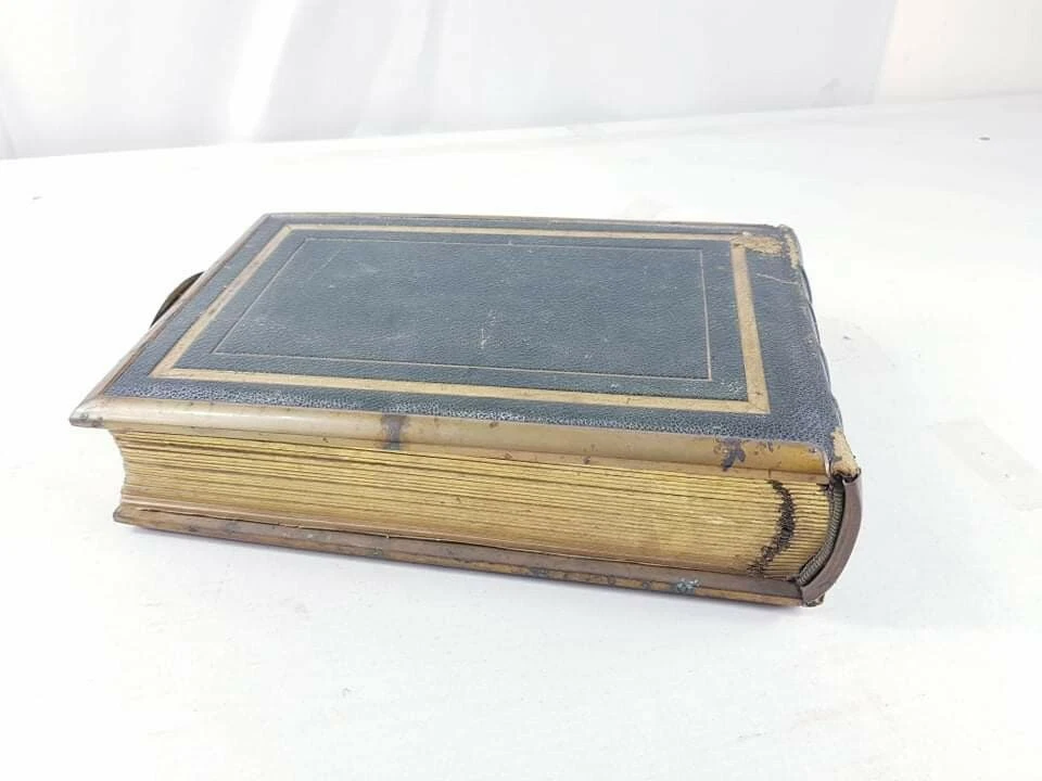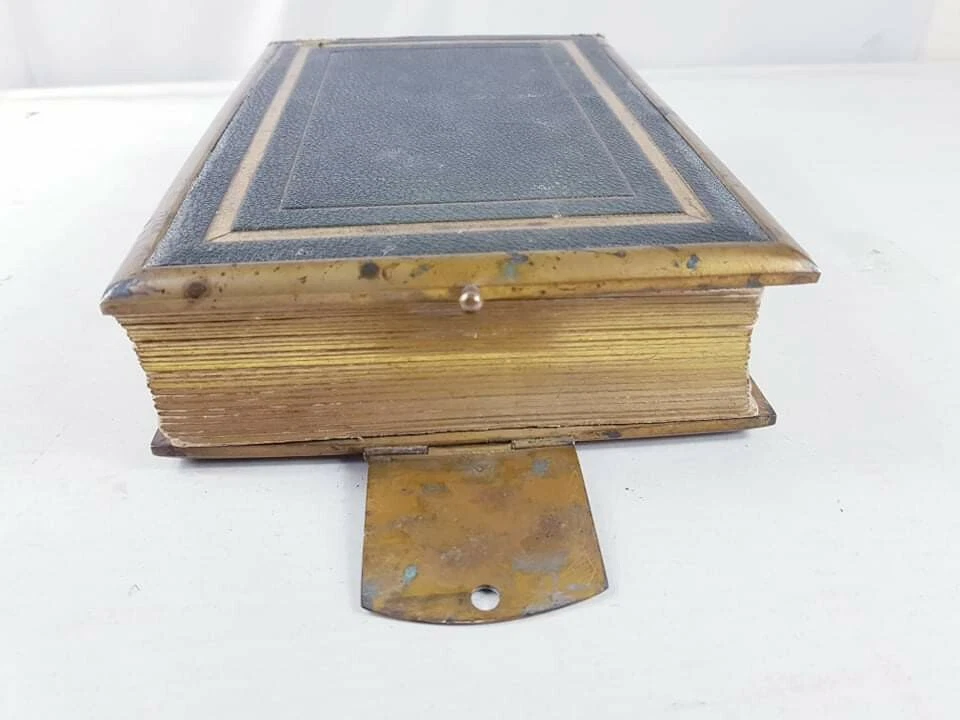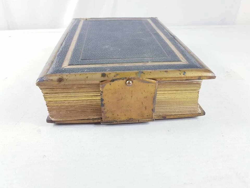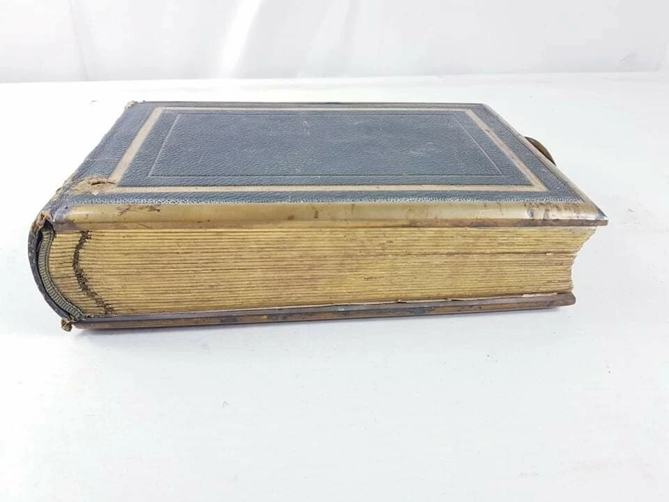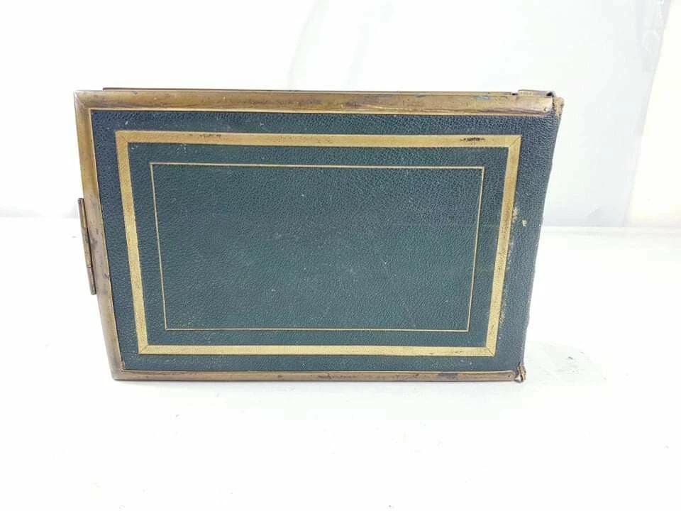 A Superb Large Antique Victorian Leather Bound Photo Album Book LONDON. Dispatched with Royal Mail This is a quality leather portrait photo picture album with large brass clasp closure, gold gilt pages, and brass reinforcement stay-tabs to keep the pages secure. There is writing on some of the pages as shown in the photos.The interior is in very good condition, with visible wear on the corners. I did not attempt to polish the book, but the purchaser may want to recondition the album with polish. PLEASE CHECK THE PICTURES FOR THR EXACT CONDITION This is a heavy and formidable. Perfect for old family heirloom photos. PLEASE VISIT MY STORE AND CHECK MY OTHER ITEMS THANK YOU