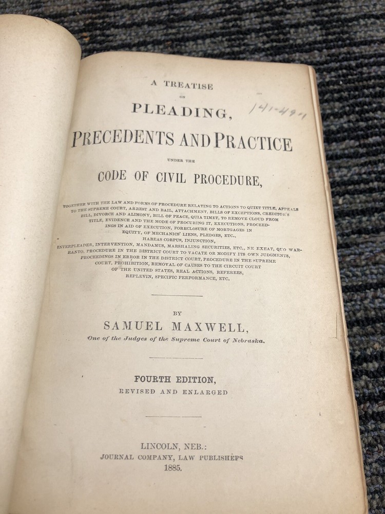 This antique book, titled "A Treatise On Pleading Precedents And Practice 1885 4th Ed", is a wonderful addition to any collector's library. The author, Samuel Maxwell, provides valuable insights into the topic of law through his informative writing style. The language used in this book is English, and it was published by Journal Company, Law Publishers in Lincoln Nebraska in the year 1885. The book is bound in high-quality leather, adding to its durability and aesthetic appeal. It is classified under the categories of Books & Magazines and Antiquarian & Collectible. The book's aspects include the subject of Pleading, as well as United States as the country/region of manufacture. This book is a must-have for law enthusiasts and collectors alike.