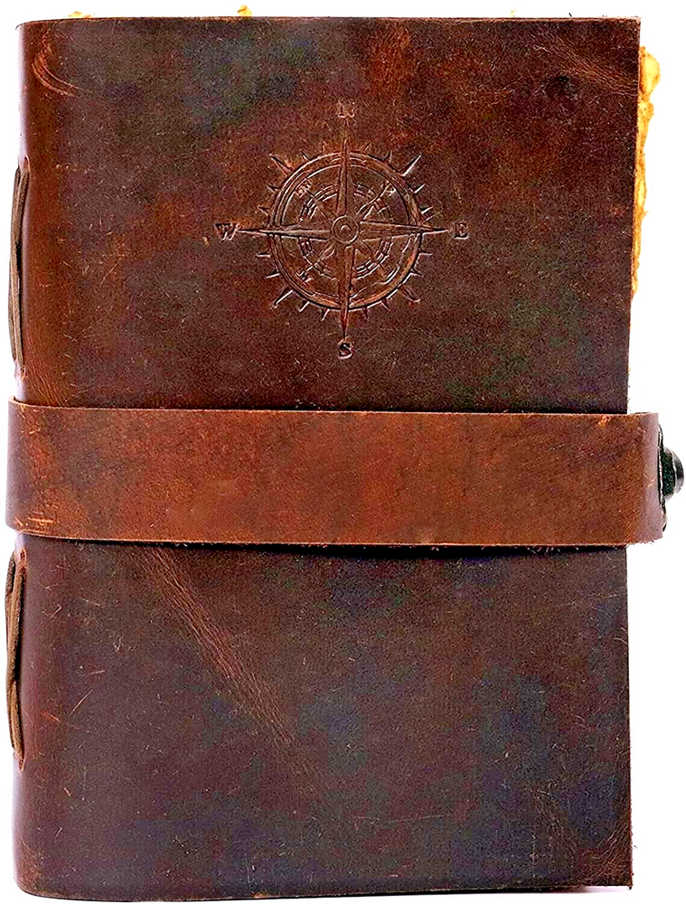 This A4 size journal is perfect for those who love nautical themes. The cover is made of high-quality leather and features a compass rose, making it a great addition to any collection. The journal is blank, allowing you to fill it with your own thoughts, ideas, and notes. It is perfect for keeping a log of your daily activities or jotting down important information. This unit was manufactured in India and comes with one journal. *Product details Handmade journal, blank books, personalized leather, vintage diary, genuine leather journal, anniversary gift, gifts for her, personalized gifts, gifts for him, leather journal, valentines gifts, a5 journal Customized size Size - 7x5 inches (200 on both sides) Size - 8x6 inches (200 on both sides) Size - 9X12 inches (200 on both sides) Paper - 100 pages (200 on both sides) Paper - Pure Cotton Hand Made Plain Paper (Unline) Leather Colour: Brown and dark brown Leather - Full Grain Leather (Best Quality) Soft and durable natural handmade leather Quality Metal Hardware (Brass metal) Ideal gift for writers, poets, artists etc. Tied with traditional sewing methods *Materials: Full Grain Leather, Antique Brass Hardware, Handmade Sheets, Natural Leather, Handmade Paper, Unlined Paper, Leather Journal, Leather Diary, Leather Unlined Diary, Blank Paper Diary, Leather Cover, Notebook, Leather Sketchbook Artist Sketchbook, Photo Album, Traveling Notes, Business Executive, Logbook, Poetry Work, Journalist, Food Planner, Instagram Scrapbook, Bible Journalism, Documenting Your Spiritual Journey, A Dream Journal, A Book of Shadows, Grimoire, Sketchbook, Idea Book for Ideal , prayer book, gratitude journal, a daily journal or anything else you can think of. Luxury, Handmade, Fair Trade and Eco-Friendly Capture and share your thoughts before you walk away Handy for handwriting, drawing or sketching and compact to carry in your bag hpprox 100 sheets/200 pages of online paper Hand crafted non-bleeding paper made from recycled cotton that is chemical free Due to the Coptic binding process, this magazine is not refillable - it is unique in its kind! Hand-stitched Coptic leather binding secures pages firmly Suitable for all pens and pencils easy to care for Wipe slightly dry with a tissue, or rub in circular motions to reduce scratches and dust Shipping&Delivery Free worldwide shipping on all products. USP Inspired by distressed vintage style Handcrafted by Me and Skilled Village Artisans Fair trade factory price (no middleman) GUARANTEED HIGH QUALITY SELECTED LEATHER y friendly (no chemicals used) Handmade recycled cotton pit paper Welcome to the world of Leather Diary Handmade by