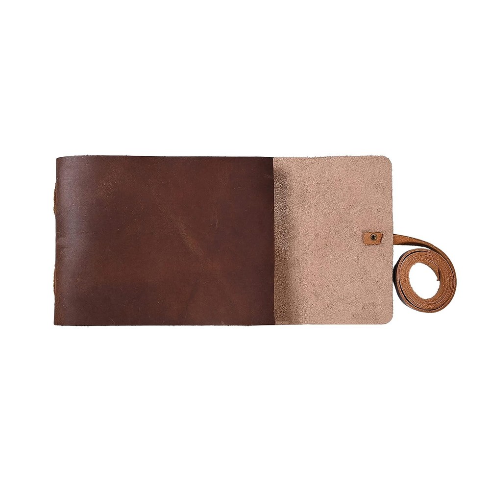 This A5 Leather Bound Journal is a perfect addition to your collection. The journal is bound with 100% handmade paper and is refillable, making it a practical choice for everyday use. The cover is made of high-quality leather, ensuring durability and protection against scratches. The journal is manufactured in India and comes with a unit quantity of 1. It is ideal for keeping track of your daily activities, jotting down notes, or even as a gift for a loved one. The unit type is a unit and the cover material is leather. This journal is perfect for those who value quality and practicality. Customized size Size - 7x5 inches (200 on both sides) Size - 8x6 inches (200 on both sides) Size - 9X12 inches (200 on both sides) Paper - 100 pages (200 on both sides) Paper - Pure Cotton Hand Made Plain Paper (Unline) Leather Colour: Brown and dark brown Leather - Full Grain Leather (Best Quality) Soft and durable natural handmade leather Quality Metal Hardware (Brass metal) Ideal gift for writers, poets, artists etc. Tied with traditional sewing methods *Materials: Full Grain Leather, Antique Brass Hardware, Handmade Sheets, Natural Leather, Handmade Paper, Unlined Paper, Leather Journal, Leather Diary, Leather Unlined Diary, Blank Paper Diary, Leather Cover, Notebook, Leather Sketchbook Artist Sketchbook, Photo Album, Traveling Notes, Business Executive, Logbook, Poetry Work, Journalist, Food Planner, Instagram Scrapbook, Bible Journalism, Documenting Your Spiritual Journey, A Dream Journal, A Book of Shadows, Grimoire, Sketchbook, Idea Book for Ideal , prayer book, gratitude journal, a daily journal or anything else you can think of. Luxury, Handmade, Fair Trade and Eco-Friendly Capture and share your thoughts before you walk away Handy for handwriting, drawing or sketching and compact to carry in your bag hpprox 100 sheets/200 pages of online paper Hand crafted non-bleeding paper made from recycled cotton that is chemical free Due to the Coptic binding process, this magazine is not refillable - it is unique in its kind! Hand-stitched Coptic leather binding secures pages firmly Suitable for all pens and pencils easy to care for Wipe slightly dry with a tissue, or rub in circular motions to reduce scratches and dust Shipping&Delivery Free worldwide shipping on all products. USP Inspired by distressed vintage style Handcrafted by Me and Skilled Village Artisans Fair trade factory price (no middleman) GUARANTEED HIGH QUALITY SELECTED LEATHER y friendly (no chemicals used) Handmade recycled cotton pit paper Welcome to the world of Leather Diary
