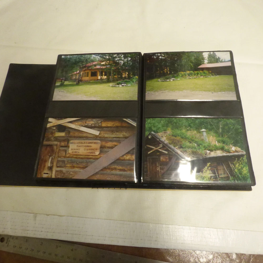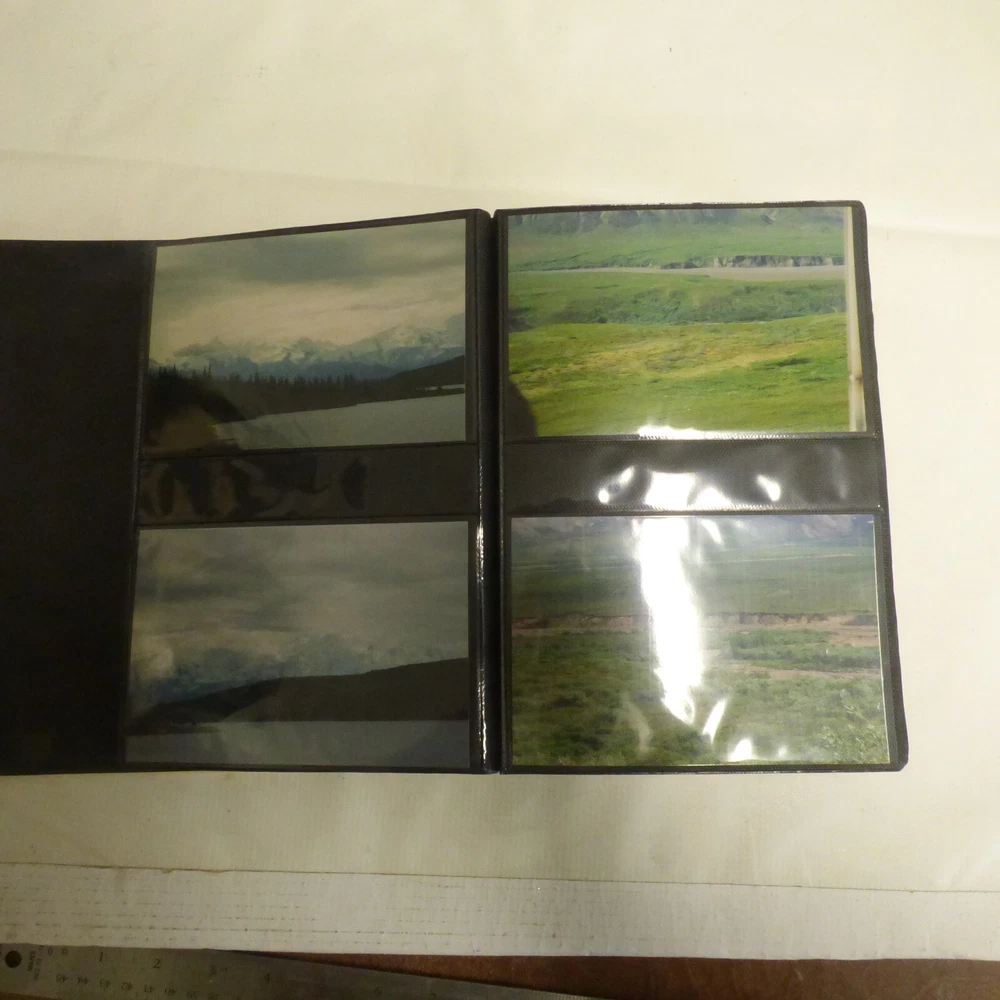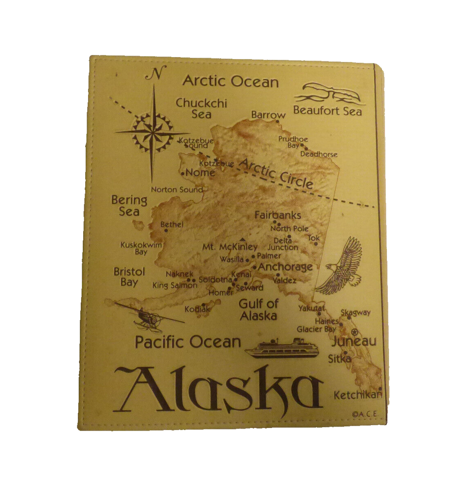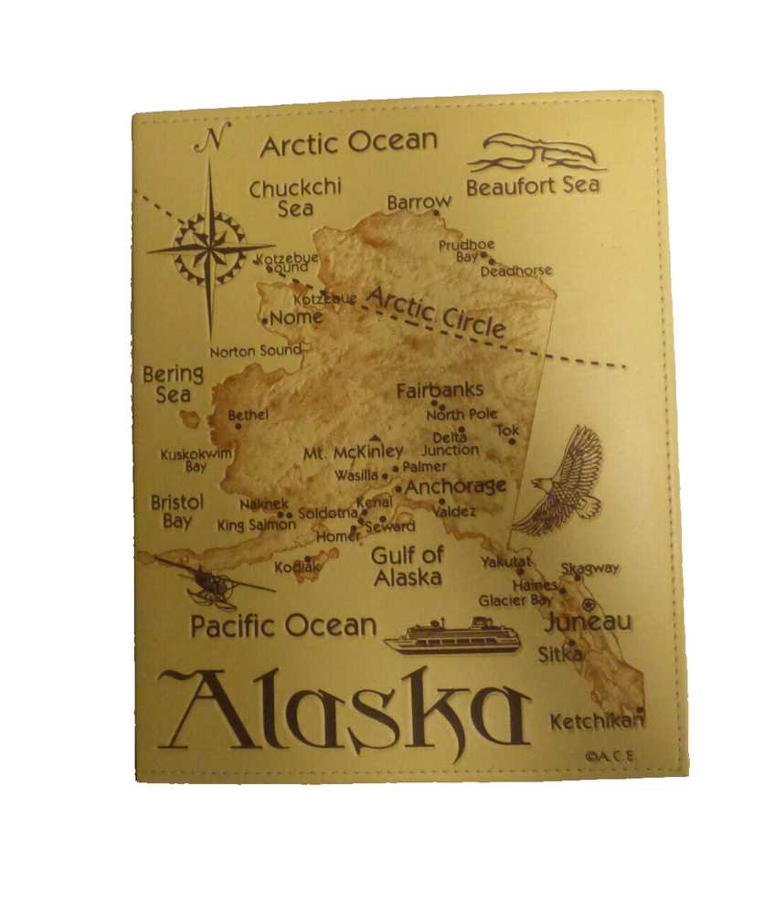 The A.C.E. Alaska Photo Album is a slip-in album featuring a faux leather cover with a map design of Alaska. It can hold 4x6 photos and is book bound for easy organization. This travel-themed album from Arctic Circle Enterprises is perfect for storing memories of trips to Alaska, with each page allowing you to slip in photos to create a personalized keepsake. Made in China, this beige album is ideal for showcasing your adventures in a stylish and compact format. Very good condition. This comes with photos from Alaska. Not every page has photos. F9-4B
