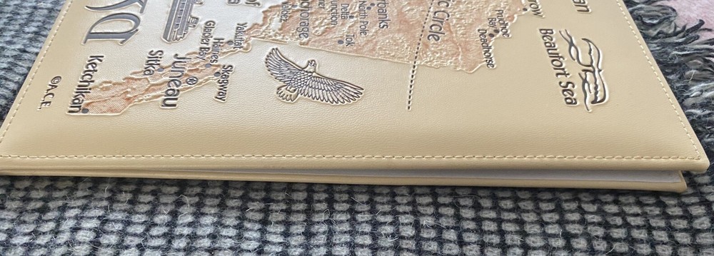 This is a photo album in beige with an Alaska map theme. It is an easy load, acid-free slip-in album designed for 8.5" x 11’’ photos. It is ideal for storing and displaying travel-themed photographs. Photo album Measures 10’’ x 11 1/2’’. Map is on front and back cover. Gently used. Comes from a smoke free home. Thank you for looking.