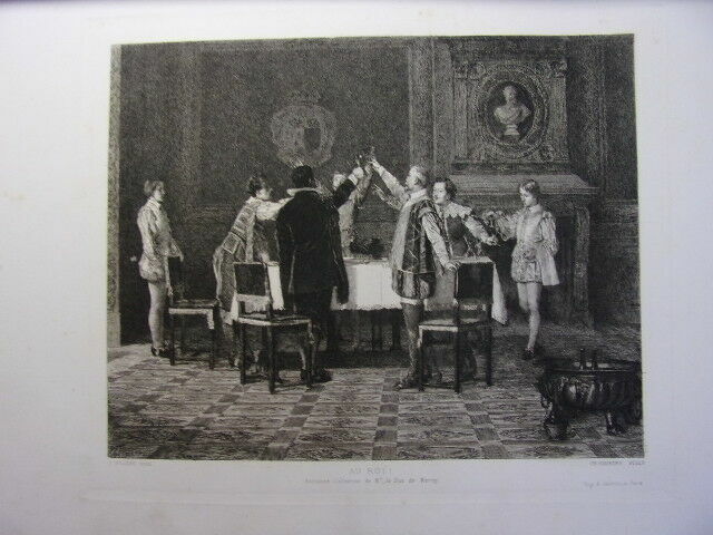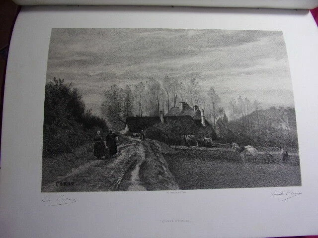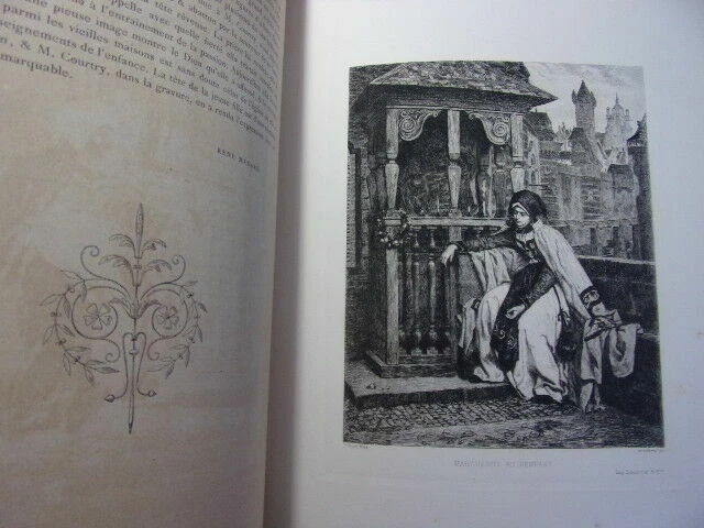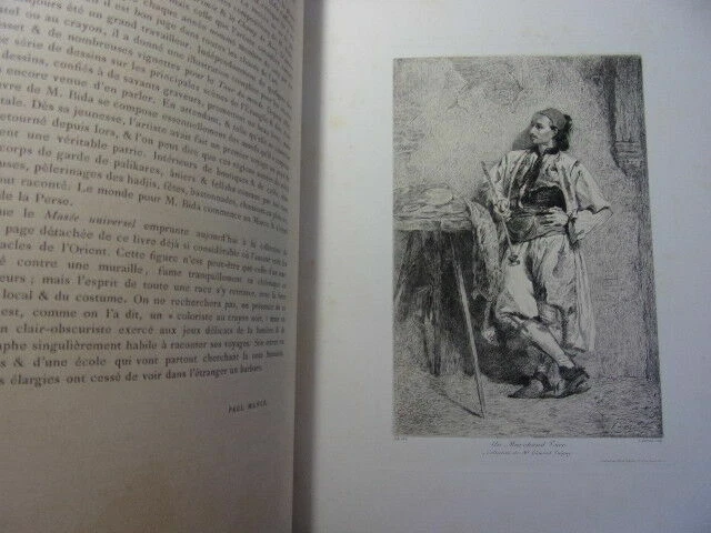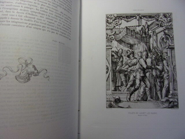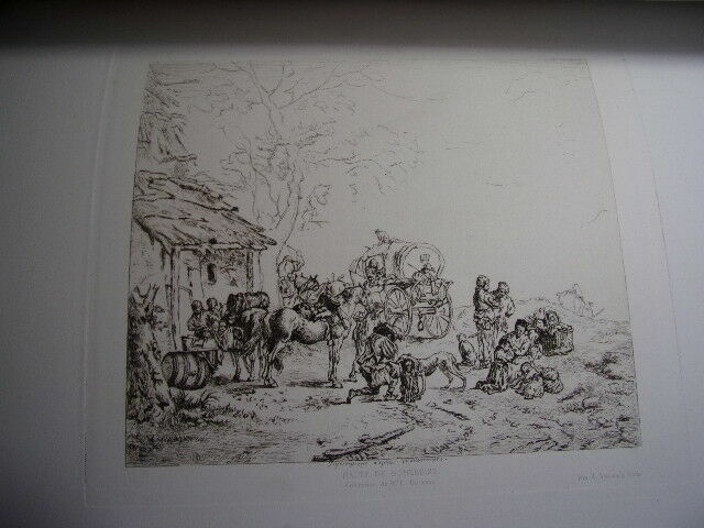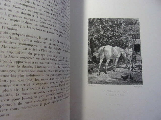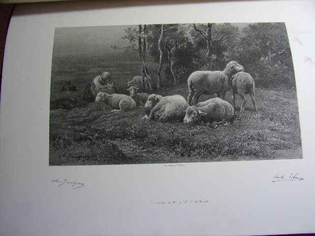 ALBUM D'EAUX FORTES & LITHOGRAPHIES de 20 planches reproduisant des œuvres célèbres des Maitres anciens et contemporains ( accompagnées d'une page de texte ) Jeune Berger par Giulio Campagnola - Le philosophe en méditation, Rembrandt - Au Roi ! F.Willems - Une vanneuse, Feyen-Perrin - L'Ecolier, Thomas Couture - L'Entrée du village, Corot - Halte de Bohémiens, Wouwermans - Pilate se lavant les mains, Hans Holbein - Les moutons en plaine, Ch. Jacque - Un tribunal à Damas, Mme Henriette Browne - L'InfanteMarguerite, Vélasquez - Un marchand Turc, Alexandre Bida - L'Etang de Ville-d'Avray, Corot - Arnautes jouant aux échecs, Gérome - La fille de Charles 1er, Antoine Van Dyck - Le marais d'Incheville, M.Van Marcke - L'Enfant prodigue, Thomas couture - Le cheval qui boit, E.Meissonier - Portrait de Mme F., Carolus Duran - Marguerite au rempart, Tissot - vol. in-folio, 340x260, relié demi cuir, très bel état intérieur, bel exemplaire Paris, Librairie Renouard, vers 1880/1900