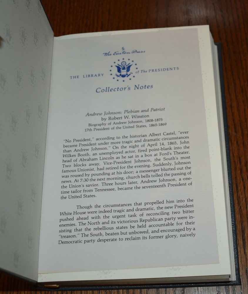 ANDREW JOHNSON Robert Winston 1987 Easton Press Library of Presidents In great condition, bought then placed on my bookshelf for decades. Please see my many photos. Check out my many other listings, many more Easton Press books coming.