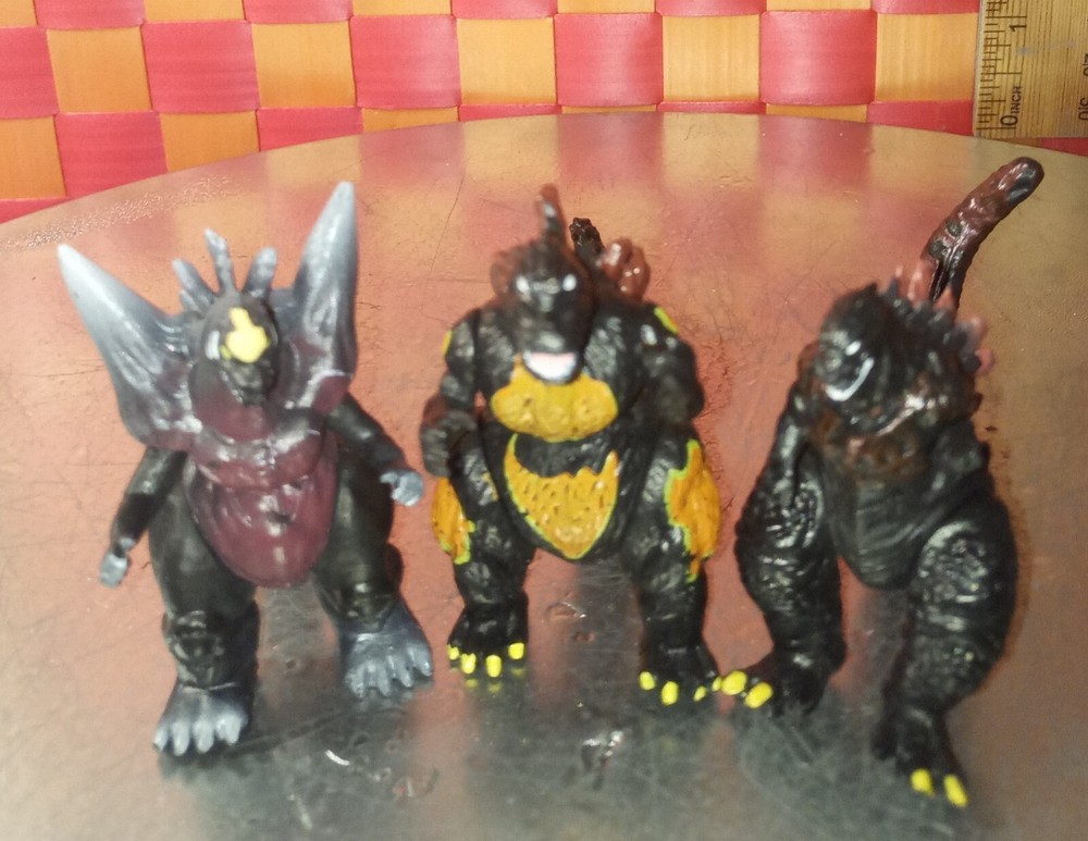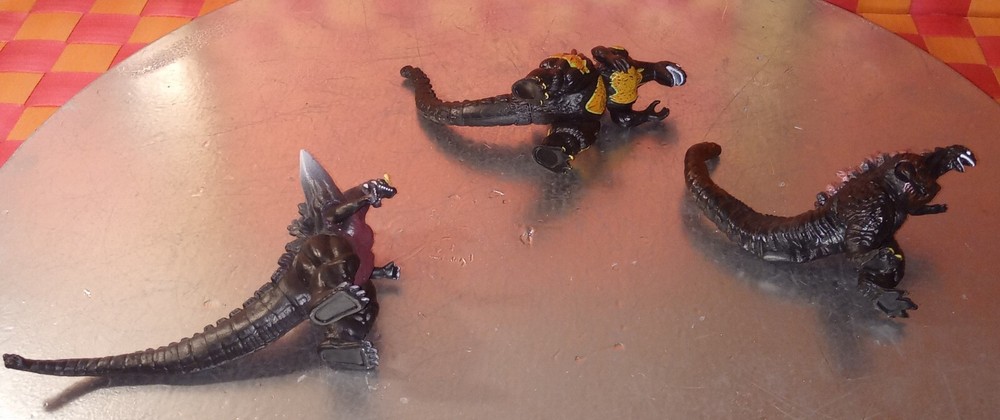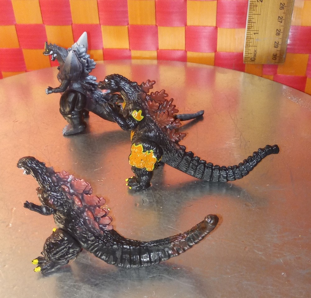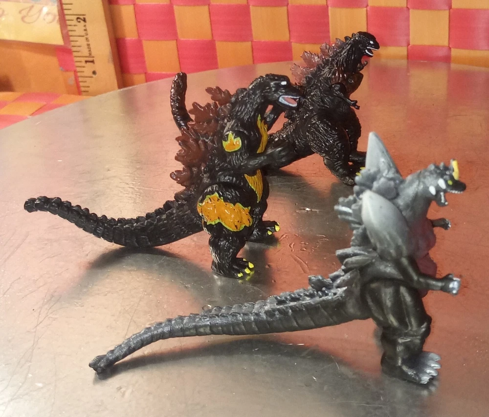 The product is a set of three plastic poseable action figures featuring Godzilla. Each figure measures 2 inches in height and 3.5 inches in length. These items are designed for play or display and are a part of the Godzilla theme. These action figures are in wonderful condition, preowned, very clean and well kept, ready for play and your display collection, not separating, collector items. Action figures, Godzilla, 3 items, 2"h by 3 1/2"L, plastic material... Please Read: All Smiles Collectible Keepsakes To: You From: Me. Please see my listings on eBay and other platforms. All items presented and sold AS IS and ALL SALES ARE FINAL: specifically vintage items and antique items. Item(s) weigh approximately: 0 lbs. 2.5 oz. The Price of items based on MV and condition. Reasonable offers considered. Inquiries are welcome. Note: weight of item is actual weight solely of item, thus a final weight is calculated for materials used to safely send thus the packaging weight must be accounted for in the total weight. Item(s) shipped from Buffalo, New York 14213 with CARE using bubble wrap and other materials to ensure items’ stability and safety for delivery/distance traveling, via USPS/UPS. Current rates will be provided via the platform. Boxes and materials are recycled here. Please keep in mind of Holidays and Sunday orders. I can only confirm the date the package was delivered to the USPS/UPS office building. You can follow up with the tracking numbers provided. You can call USPS at 1(800)-222-1811 or UPS at 1(800)-833-9943 and use your tracking number. Item(s) delivered to the address that you have on file via your selected method of payment. Thank you for your patience. Item(s) is/are presented as is and current condition. Collectibles make for thoughtful and wonderful gifting ideas. They are instrumental in exhibiting both implicit and explicit undertones of importance and relevance of personal interest and care and others’ interests. Collectibles bring back memories and carry with them a wholeness of your interpretation, definition and meaning of self and of life. They absolutely add warmth to and inspire happy thoughts and precious moments of our lives. When displayed they are very inviting to the eye. They add colorful vibrancy and sustain brilliance to your completed collections and your home. They inspire story time and talk time especially when added to our sharing opportunities and moments. All Smiles is registered in Buffalo, New York since June 2023, thereby, Item(s) offered AS IS. Item(s) currently presented in working/acceptable condition at time of presentation of listing. In helping make a purchase decision, the item(s) is/are detailed in the pictures/photos and/or video presentation and description notes on the listing for your review. Thus, acceptable/apparent defects/issues, if any, are noted/mentioned. Thus, what you see is what you will receive so please look closely as the photos and pictures are up close and/or cropped/zoomed in on to clearly see item(s) and their condition. Items’ original package/box and/or accessories, if inclusive, are included in the actual listing photo(s)/picture(s). Disclaimer: I do not have rights to any background music/sound that may be heard in videos. Currently, the online and shipping process is preferable as this is a online reseller business only at this time. However, any scheduled pick up is cash only at pick up and will be scheduled during reasonable and agreeable daylight hours in public. Safety first, Therefore, please no pick up after 830pm daily, EST. Your consideration and accountability is appreciated. It is very pleasant for me to know that several of my items will grace and garnish your gifting seasons and home. It is my heart’s pleasure to assist you and I thank you for the opportunity. Overall, collectibles will bring to your family and friends, associates, all your loved ones, and yourself, ALL SMILES ( 😊 )… Thank you for looking, and Always May You and Yours Be Blessed... IMJ