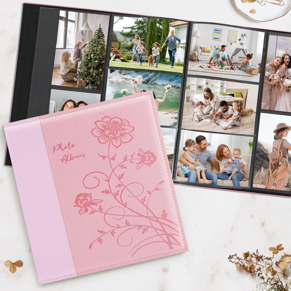 The Artmag Photo Album is a large capacity picture album that can hold up to 1000 4x6 photos, providing ample space for all your precious memories. The album features 100 sheets of black pages, with each page holding 3 horizontal and 2 vertical photos. The elegant leather cover not only adds a touch of sophistication but also provides a comfortable grip. The album measures 13.2x13 inches and weighs 5lbs, making it a substantial yet manageable size. The Artmag Photo Album ensures your photos remain acid-free, air-free, and dustproof, preserving their quality for years to come. With its vintage style and floral theme, this album is an ideal choice for a wedding or any special occasion. It is available in pink color and is designed to hold both horizontal and vertical 4x6 photos. Large Capacity Photo Picture Album: holds 1000 4x6 photos pictures, totally 100 sheets / 200 pages, each pages holds 3 horizontal and 2 vertical photos Keep your photos acid free, air free and dustproof Adopting elegant leather cover, a really comfortable touch Dimensions of the 1000 4x6 Photo Picture Album: 13.2x13 inches, weighting 5lbs