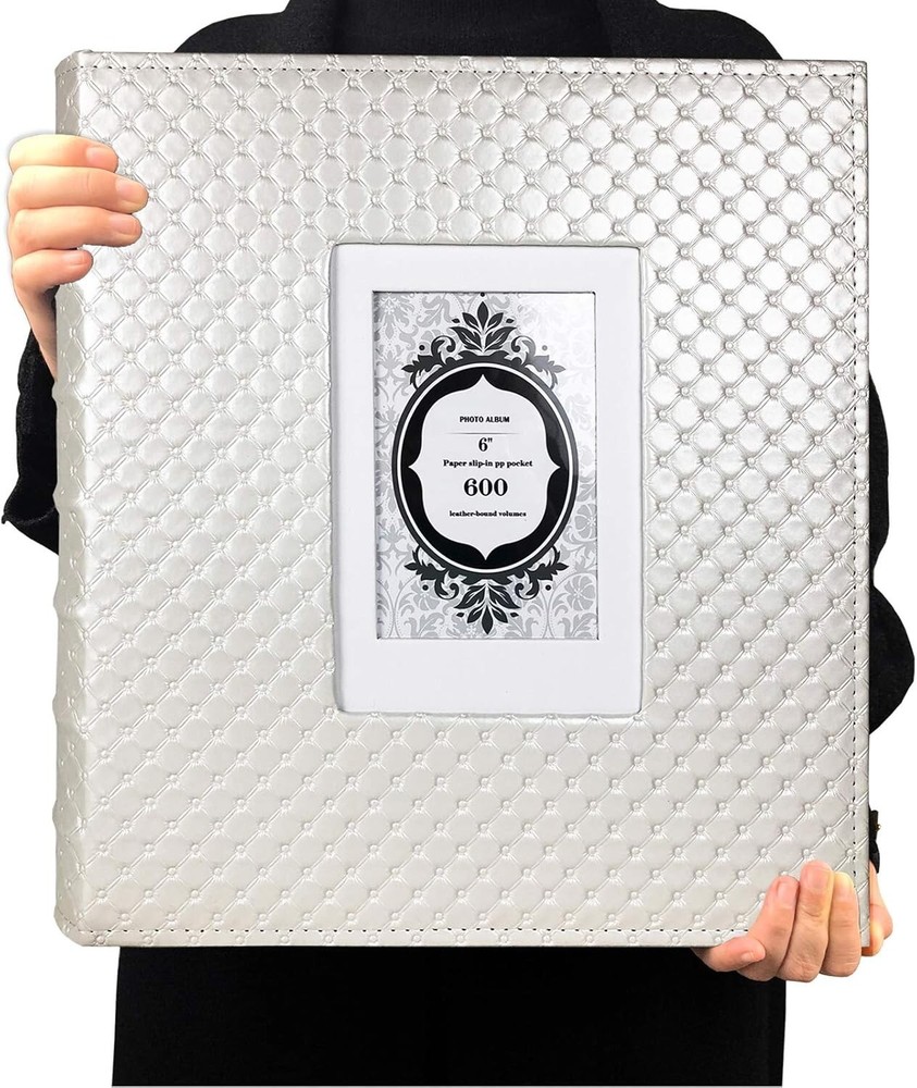 Size: length 14.5 x width 13.4 x thick 2.5(inches), with 60 sheets/120 pages of photo page. Can hold 5pcs of 6x4 photos per page, A total of 600 photos.Large capacity deluxe custom. Design: Leather frame cover, looks beautiful and upscale. Unique 5 transparent pocket pages,easy to store photos Quality: Archival, photo safe acid, lignin and PVC free. Perfect Valentines Gift: Our photo picture album pages look elegant, and you feel comfortable when you touch it. It is a perfect gift to your family, friends or soul mate for Birthday, Wedding, Anniversary, Valentine’s Day, Mother’s Day, Father's Day Christmas Day and many other special occasions