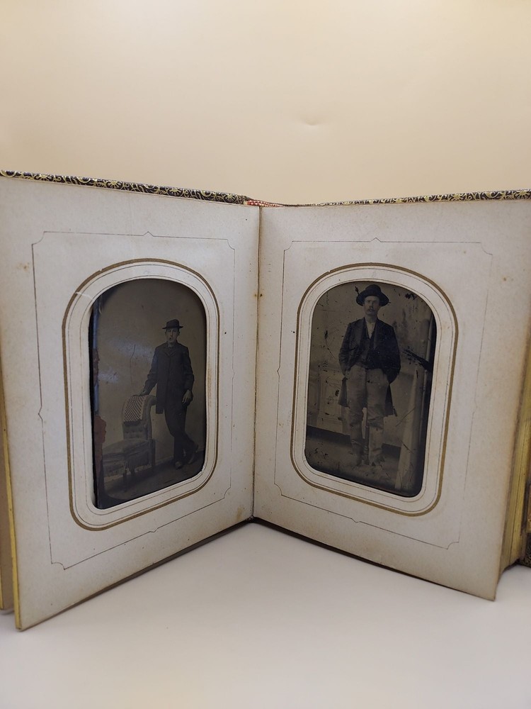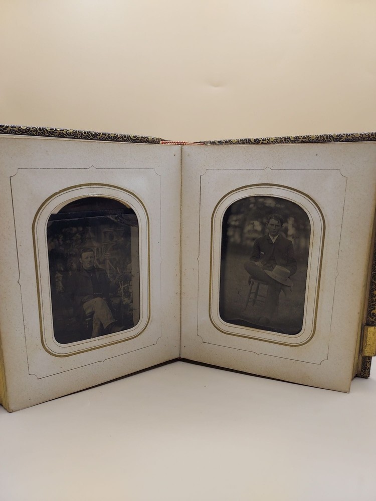 Album of 40 Civil War-era Tintypes Title: Album of 40 Civil War-era Tintypes Description: Photograph. Thick sextodecimo [15.5 cm] Full brown decoratively embossed leather, with gold metal clasps (one metal clasp is broken). Subjects unknown. All men. A couple of the photographs feature books. Seller ID: 63589 Subject: Photography Ken Sanders Rare Books Ken Sanders Rare Books is a full-service antiquarian bookshop in downtown Salt Lake City. We have a vast inventory of used and rare books, a handful of new books, and an ever-changing selection of art, ephemera, maps, photographs, and postcards. We specialize in Utah & the Mormons and Western Americana, with emphases on the Grand Canyon and the Colorado River, Yellowstone, and other national parks. The literary West is well-represented here, with deep selections of Edward Abbey, Wallace Stegner, B. Traven, and more. We offer rare and collectible books in many subjects, including Literature, Art, Photography, Children's and Illustrated Books, and Wordless Novels. Proprietor Ken Sanders has been buying, selling and collecting books since childhood. He co-owned and ran the legendary Cosmic Aeroplane Bookstore in the 1970s and founded Dream Garden Press , our in-house publishing company, in 1980. Terms & Guarantee All orders ship within 1-3 business days after receiving payment. Standard mail is USPS Media Mail. Delivery typically takes 7-10 business days after shipment. Expedited and international shipping options are also available. All items are guaranteed to be as described or they may be returned within 30 days of receipt for a full refund (prior notice appreciated). We are members of the ABAA (Antiquarian Booksellers Association of America) and the Independent Online Booksellers Association (IOBA), and we adhere to these associations' strict ethical guidelines and conditions of sale. Feedback We leave feedback for buyers once they have posted feedback for us. If you are unhappy with any aspect of a transaction with us, please contact us immediately. We work hard to keep buyers happy and to resolve the rare problem promptly. This listing was created by Bibliopolis.