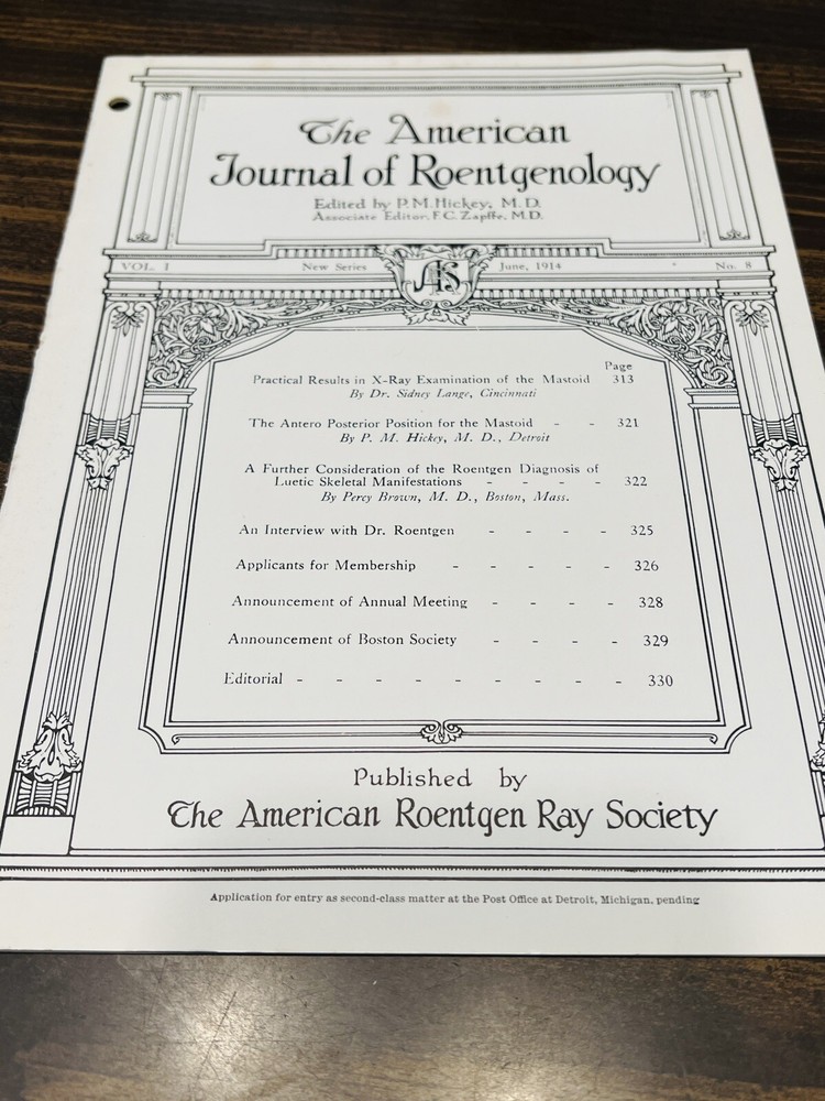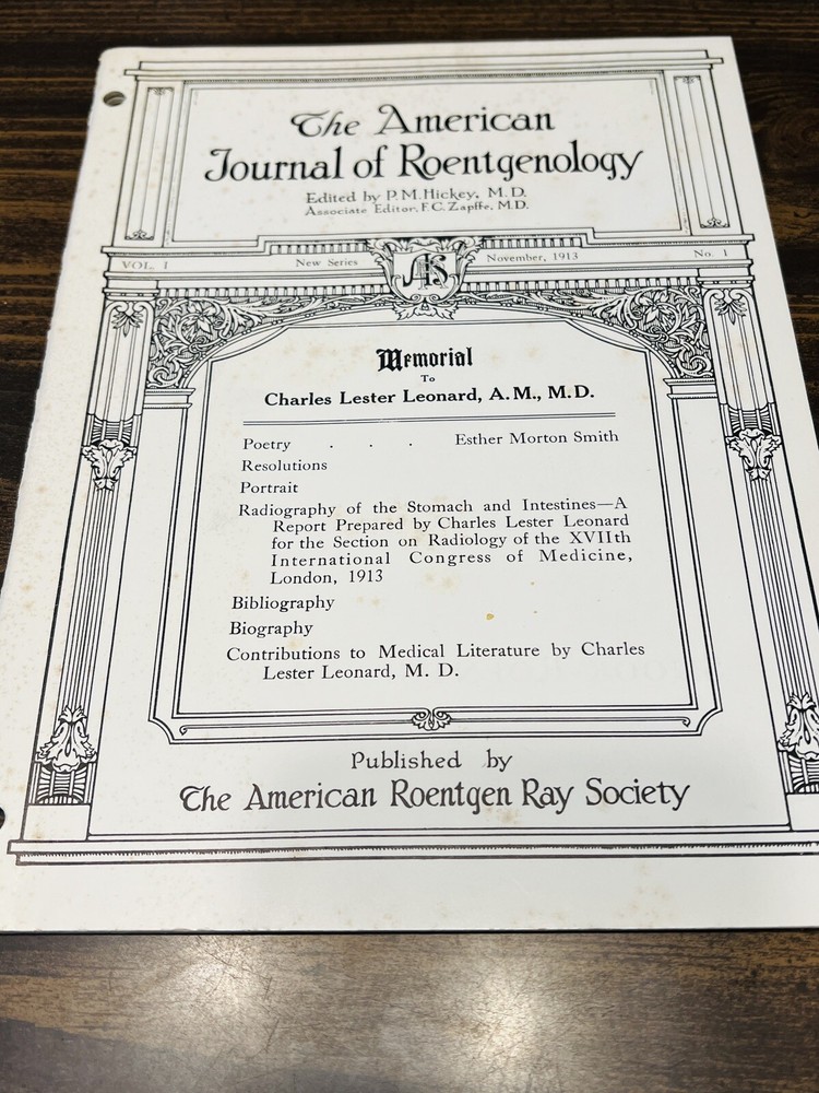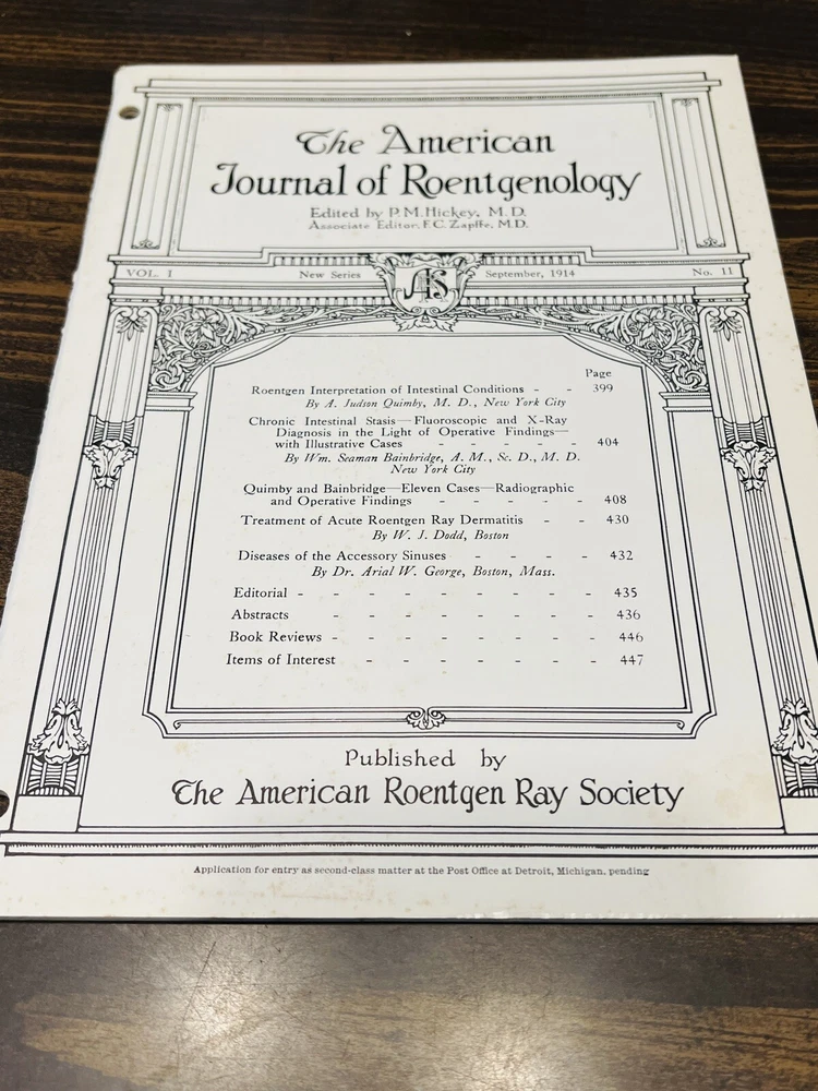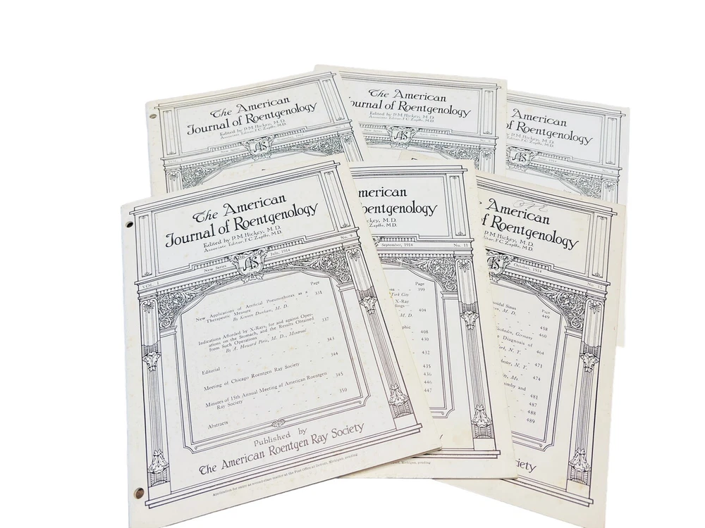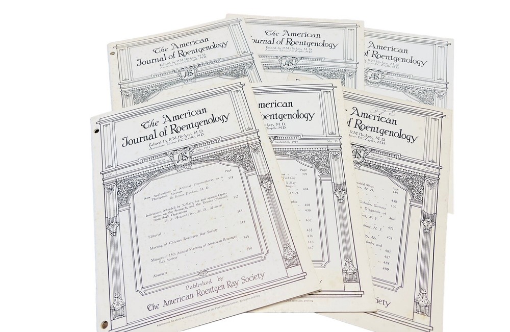 American Journal Of Roentgenology 6 Issues Vol.1, No.1, 1913, #6, 8, 9, 11, 12. Original antique issues. Some foxing on covers. Please see photos....