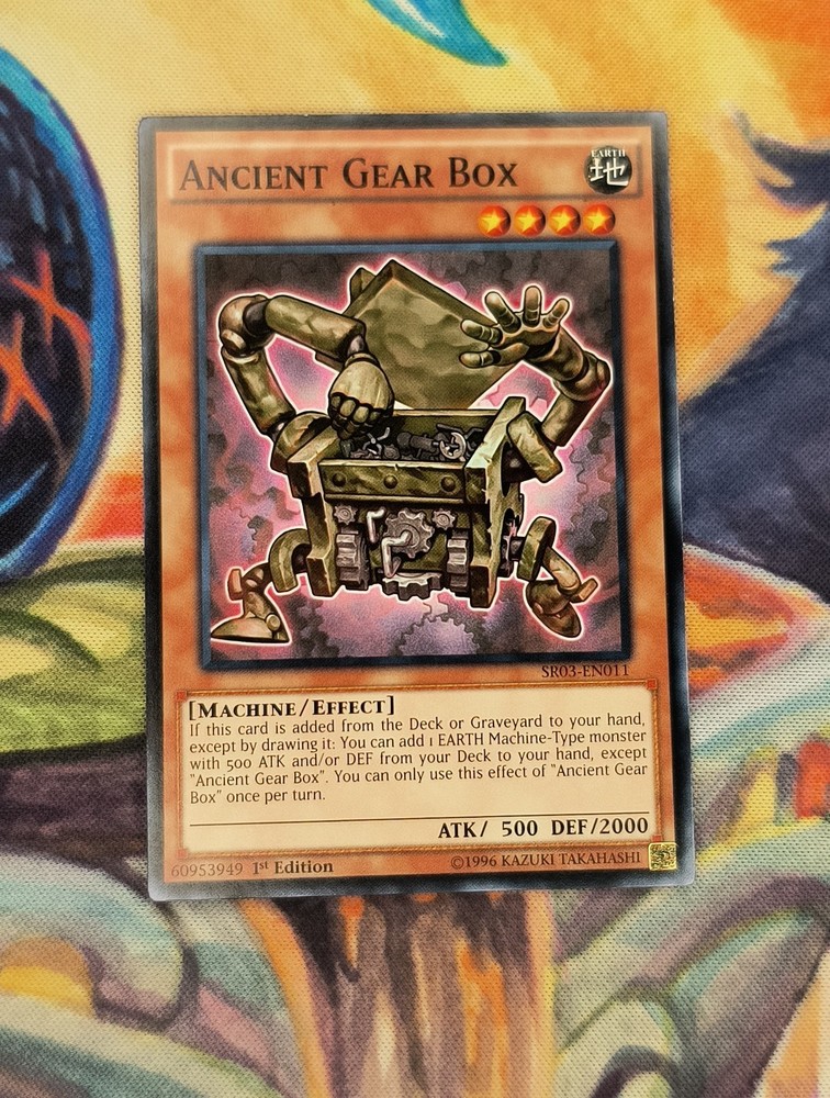 | Card Text | If this card is added from the Deck or Graveyard to your hand, except by drawing it: You can add 1 EARTH Machine-Type monster with 500 ATK and/or DEF from your Deck to your hand, except "Ancient Gear Box". You can only use this effect of "Ancient Gear Box" once per turn. |