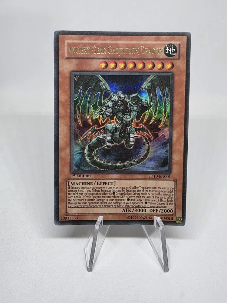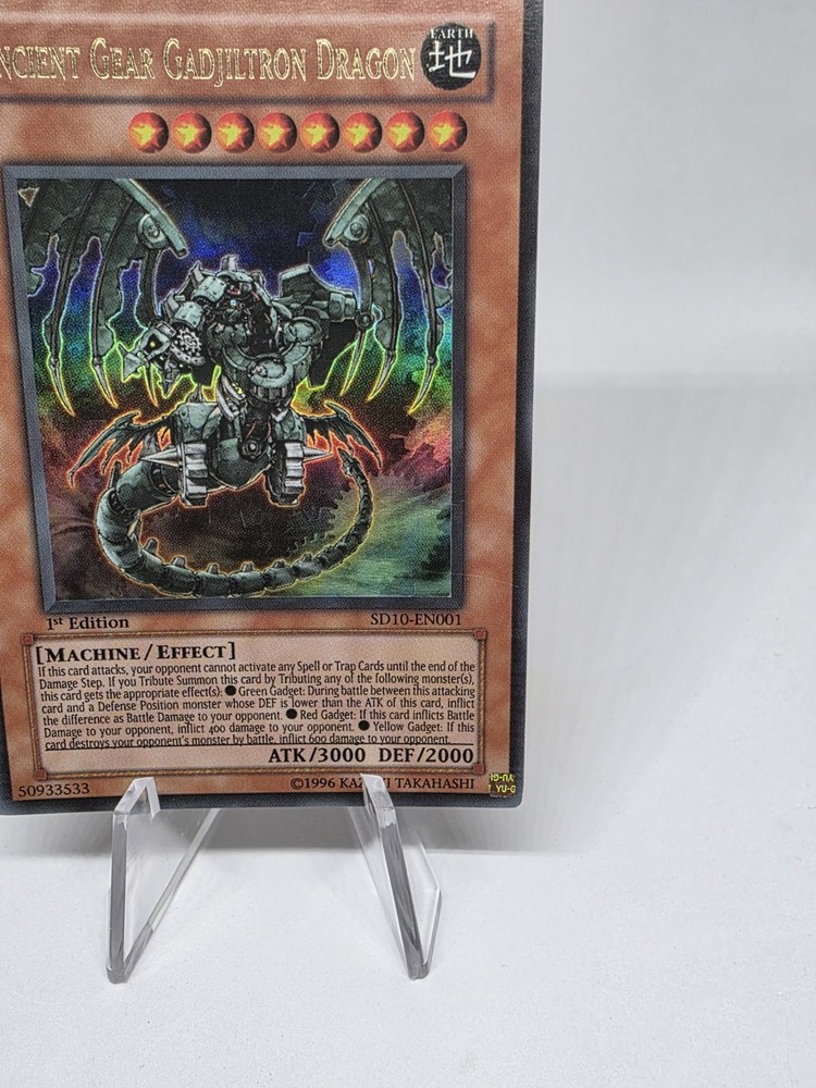 Here you will be bidding on the following: 1x Ancient Gear Gadjiltron Dragon SD10-EN001 Structure Deck: Machine Re-Volt 1st Edition! Ancient Gear Deck Staple! Discount available when purchasing more than one item! Please make sure to check cards condition well via photos upon purchasing. Additional photos can be provided in message upon request. Shipping can be combined at $.50 per card ($1.00 per lot.) *When purchasing using Standard Mailing Envelope (ESUS) it can only be selected when buying one or 2 cards that aren't encased. Any orders of 3+ cards has to ship with USPS Ground Advantage due to weight per Ebay rules. Any orders placed with ESUS can be changed or canceled due to shipping costs.* Please request an invoice or wait for invoice when purchasing more than 1 item otherwise I cannot issue refund for shipping. Thanks for checking out my store! Happy bidding everyone! -moosegaming831
